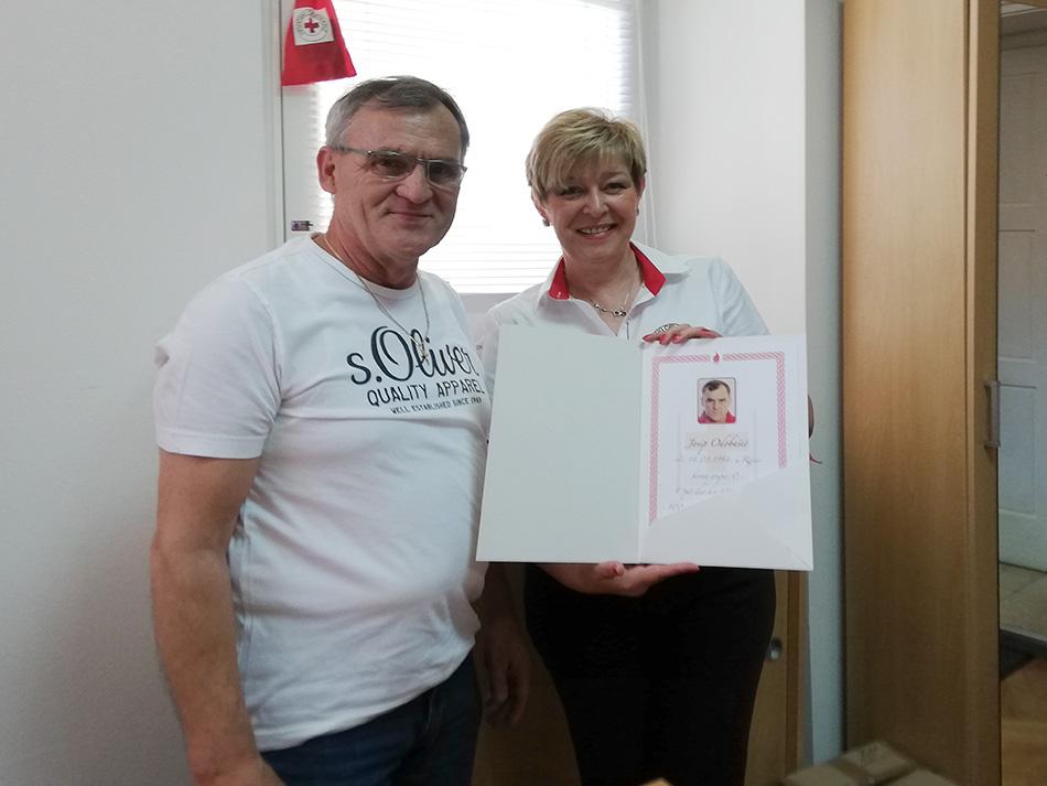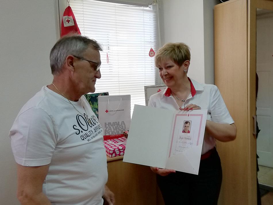 Upravo je Svjetski dan darivatelja krvi, koji se svake godine diljem svijeta obilježava 14. lipnja, bio povodom da mu na prigodnoj svečanosti održanoj u sjedištu Gradskog društva Crvenog križa Krk njegova ravnateljica Marija Jakominić dodjeli povelju povodom službenog pristupanja ovoj svakako posebnoj otočnoj asocijaciji.