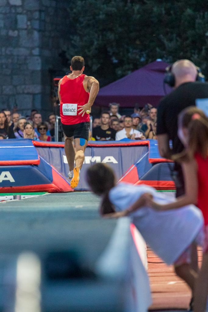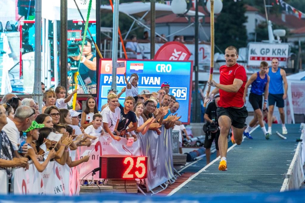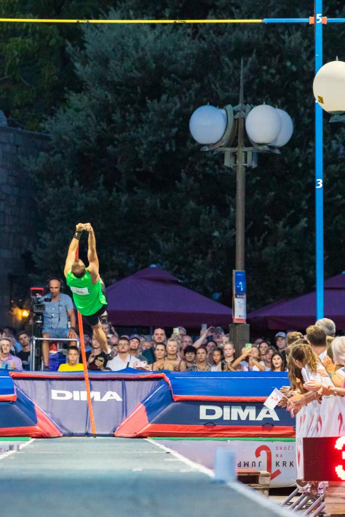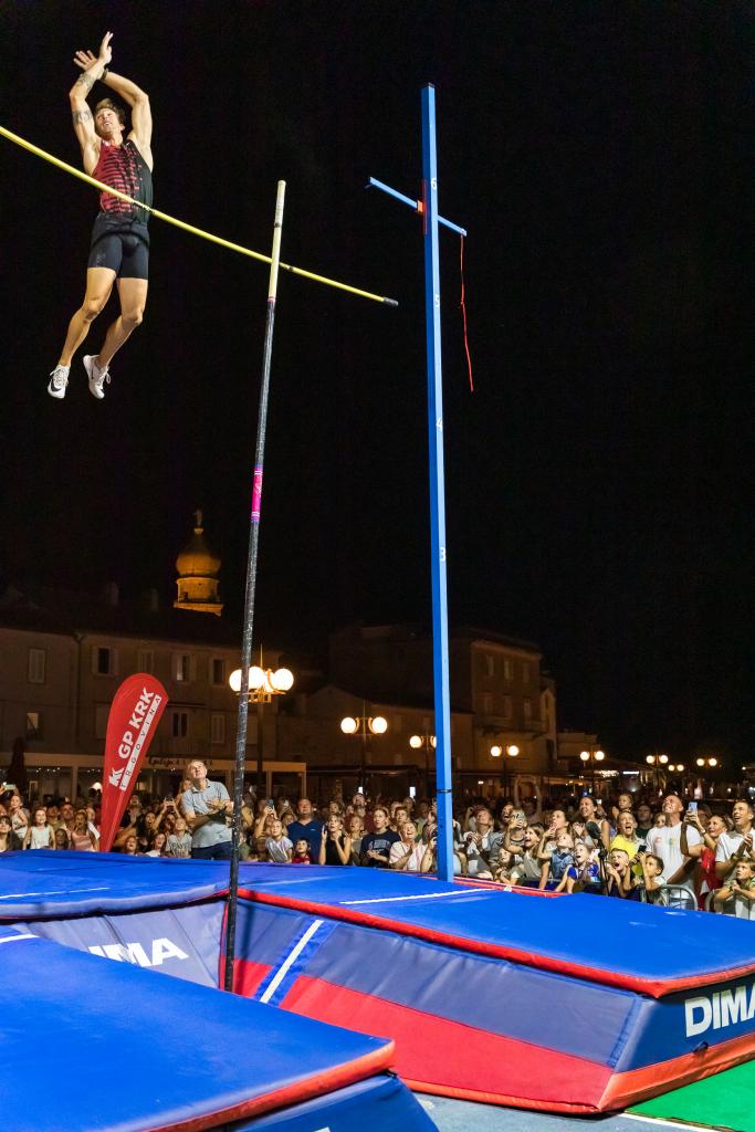 U poslijepodnevnim satima, nastupili su atletičari, također podijeljeni u dvije jakosne skupine, s time da je vrhunac mitinga, očekivano, bio nastup desetorice najjačih natjecatelja. Kako je sunce padalo tako se i letvica dizala… Nadmetanje je otvorio Puntar Fran Bonifačić završivši s preskočenih 4,90 m, ineče njegovim najboljim ovosezonskim rezultatom. Pobjedu je, s novim rekordom mitinga, odnio prošlogodišnji pobjednik i rekorder Amerikanac Olen Tray Oates preskočivši 5,60 m. Drugi je bio hrvatski predstavnik Ivan Geronimo Šerić s preskočenih 5,40 m a treći, s istom preskočenom visinom Mađar Marton Bondor.