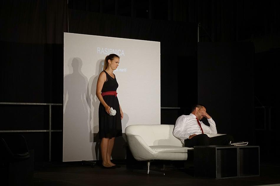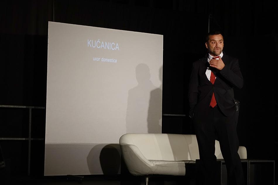 U čemu se krije čarolija ove kazališne poslastice s duhovito opisanim verbalnim okršajima u braku prepunom trzavica kojoj je pošlo za rukom osvojiti publiku diljem svijeta? Možda najviše u autorovom izvrsnom poimanju i razumijevanju muško-ženskih odnosa, upletenih u britak crni humor što je, po pitanju ljubavi, uspio nasmijati kako najveće romantike, tako i najveće skeptike. U KNAP-ovoj interpretaciji ove neobične komedije nastale prema romanima talijanskog pisca Antonija Amurrija uloga supruga povjerena je mladom zagrebačkom glumcu Petru Atanasoskom, dobitniku nekolicine nagrada za najbolje muške uloge te članu ansambla Gradskog kazališta Žar ptica, dok žensku stranu iznosi glumica Iskra Jirsak, dobitnica prestižnih priznanja na kazališnim i filmskim festivalima među kojima valja izdvojiti Nagradu hrvatskog glumišta dodijeljenu joj 2015. godine. Redateljsku palicu predstave preuzeo je Boris Kovačević, koji je dosad režirao tridesetak kazališnih djela te velik broj radio drama, televizijskih reklama i manifestacija, a od 2009. voditelj je upravo KNAP teatra.