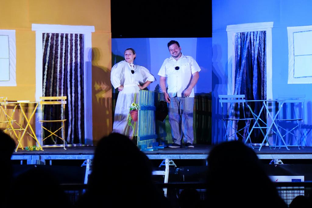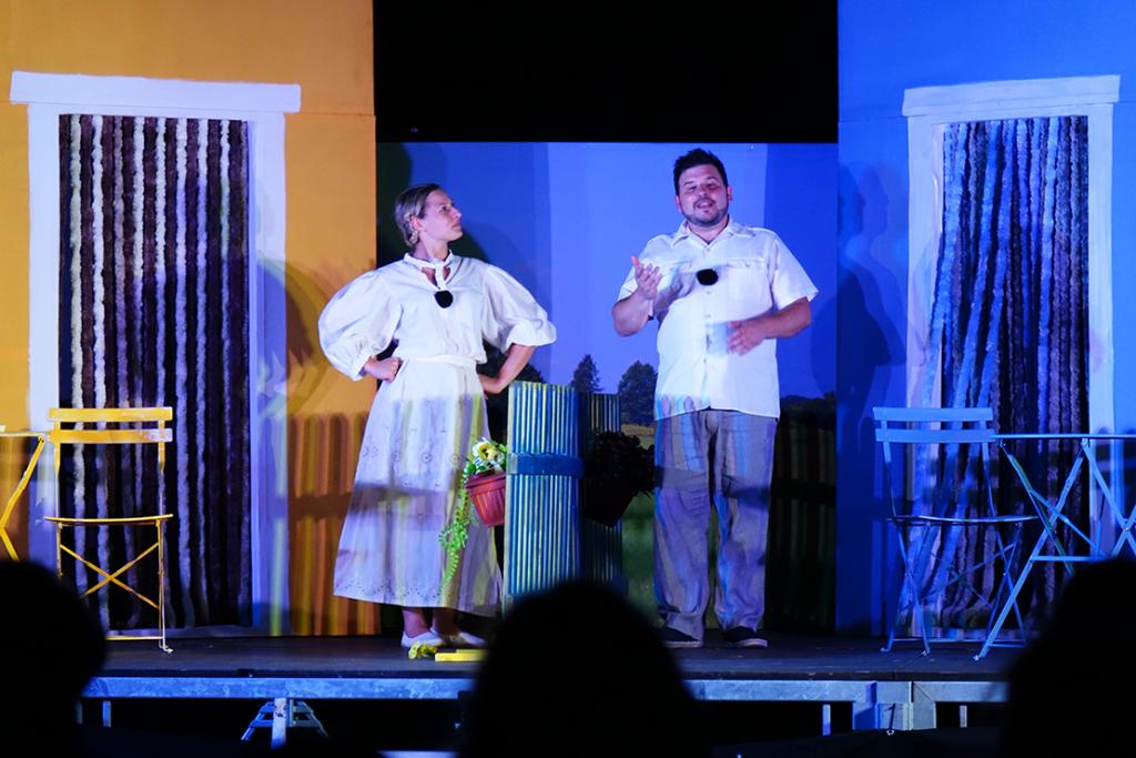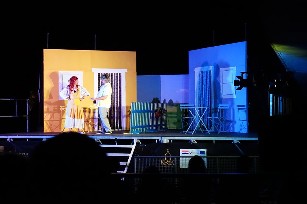 Kazališni program 69. Ljetnih priredbi, 11. kolovoza 2025. godine, na Scenu Zidine doveo je simpatičnu duo-komediju Kadi je ti kunfin? čija je izvedba bila povjerena pulskom Teatru Naranča.