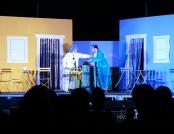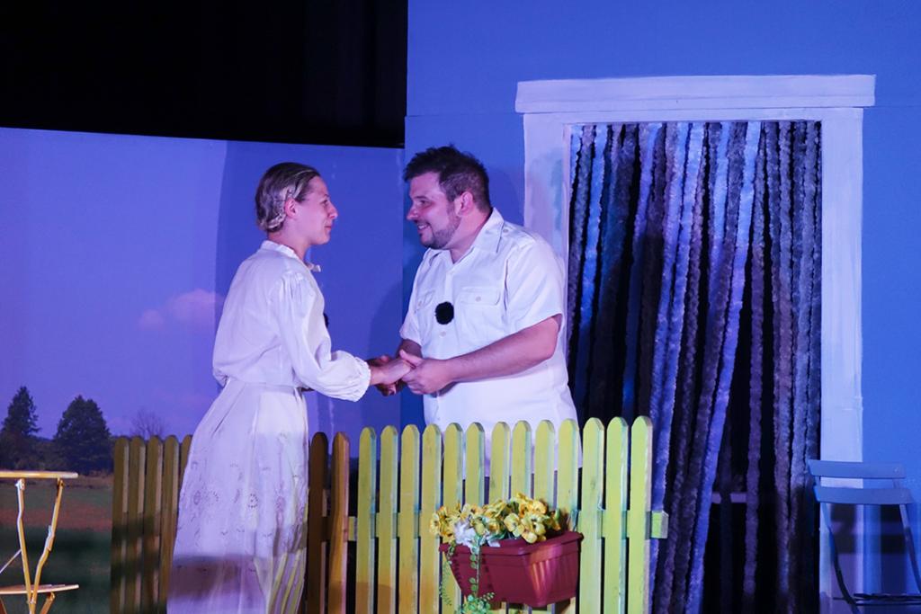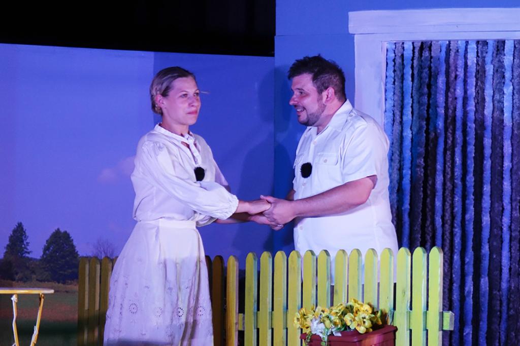 Kadi je ti kunfin? ili komediju od susedi možemo opisati kao duhovitu priču o suvremenim izazovima u kojoj se djeca i unuci snalaze u spletu dogovora i pregovora svojih očeva i djedova oko vlasništva nad zemljom. Gdje započinje pohlepa, a završava dogovor? Koliko je danas vrijedan svaki kvadrat, pa čak i onaj udaljen 20 kilometara od mora? I kako na kraju svaku spačku može spriječiti nenadana ljubav? U ovoj čakavskoj komediji koja je nakon salvi smijeha nagrađena glasnim aplaudiranjem, postalo je jasno da, unatoč svim spletkama i nesuglasicama, uvijek možemo napraviti mjesta razumijevanju. Tekst predstave potpisuje Goran Mihovilović, režiju i adaptaciju Majkl Mikolić, dok su predstavu, majstorski skačući iz uloge u ulogu, glumački iznijeli Majkl Mikolić i Mathilde Vukosavljević.