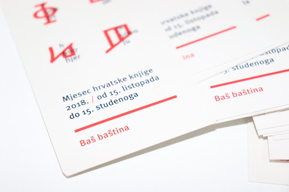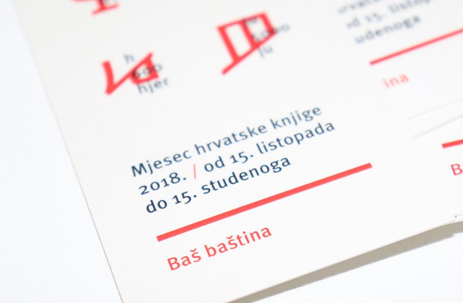 Kao glavna tema stoga je određena Baš baština, a moto (U)čitaj nasljeđe!, pri čemu je osnovni motiv glagoljica kao posebnost nacionalnog i kulturnog identiteta. Sama manifestacija, još od utemeljenja 1995. godine, odvija se pod pokroviteljstvom Ministarstva kulture Republike Hrvatske, a u organizaciji Knjižnica grada Zagreba. Tijekom mjesec dana, od 15. listopada do 15. studenog, ovom se prigodom na nacionalnoj, ali i lokalnim razinama, nastoji što intenzivnije govoriti o knjizi, bilo s gledišta onih koji se profesionalno bave knjigom, bilo onih koji koriste usluge knjižnica ili knjižara. Ideja je, naime, na različitim programima - izložbama, susretima s piscima, predstavljanjima novih izdanja, predavanjima, tribinama, radionicama i ostalim edukativnim aktivnostima - okupiti sve one koje knjiga istinski zanima, drugim riječima, knjigu što više približiti krajnjem korisniku. (Tijekom vremena broj sudionika ove manifestacije značajno je narastao: 1995. godine u obilježavanju Mjeseca hrvatske knjige sudjelovale su 102 knjižnice s oko 500 programa, dok je u 2017. godini održano više od 2.000 programa u čak 213 knjižnica i ostalih ustanova.)