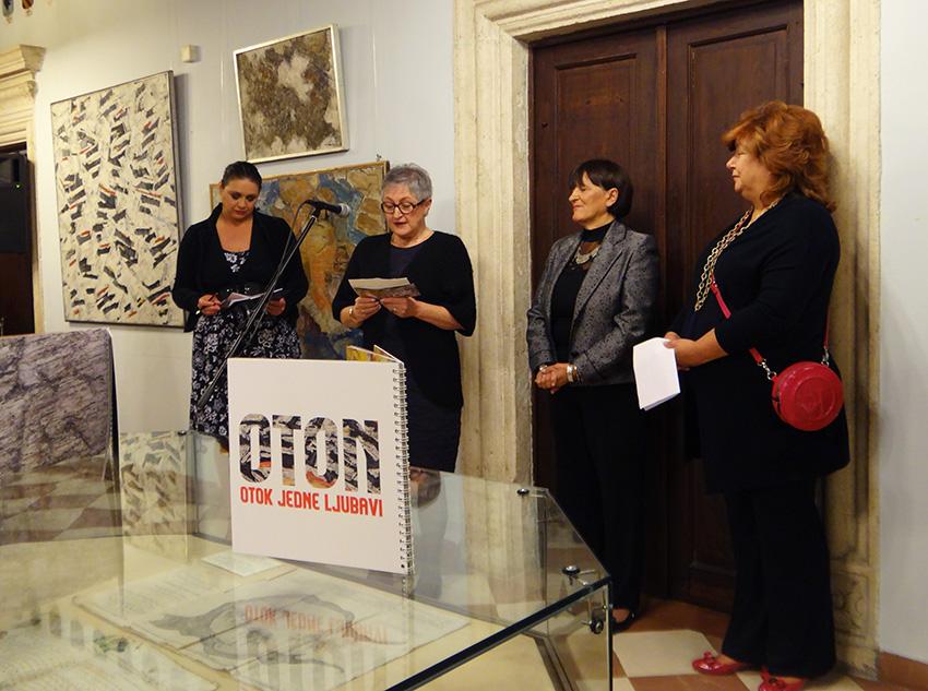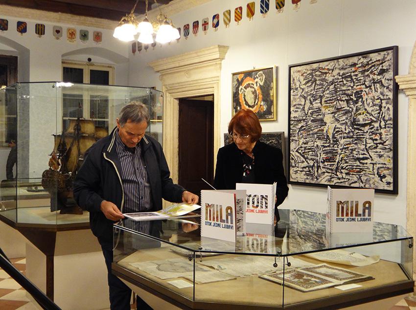 Večeras je palača Grgurina, uvodi Pejaković Vujošević, zamijenila svoj postav, a umjesto portreta kapetana i prikaza pomorskih bitaka njezine kamene zidove krase divna djela Mile Kumbatović i Otona Glihe, koji su ovom prigodom po prvi put zajedno izloženi, što u najvećoj mjeri možemo zahvaliti upravo obitelji Bašić kojoj je povjereno čuvanje njihova umjetničkog opusa. Ono što možemo istaknuti kao zanimljivost govoreći o ovoj izložbi jest to da je naša kamena palača dobila postav kakav zaista zaslužuje - apstraktne slikopise s motivom kamena kojem su se, kao temi, oba autora duž čitav svoj stvaralački vijek neprestano vraćala. Ovdje je, stoga, postavljen uz taj temat vezan segment njihova rada, 24 platna oslikana s puno ljubavi, a kada znamo da su Mila i Oton bili životni suputnici, otkriva nam se tajna koja stoji iza naziva - Otok jedne ljubavi, završava Pejaković Vujošević.