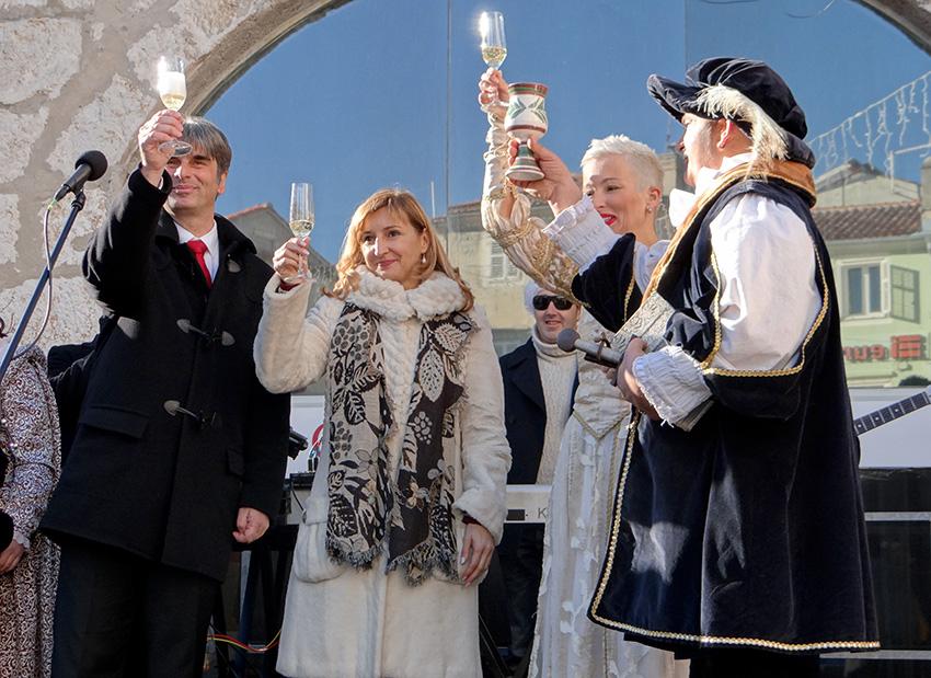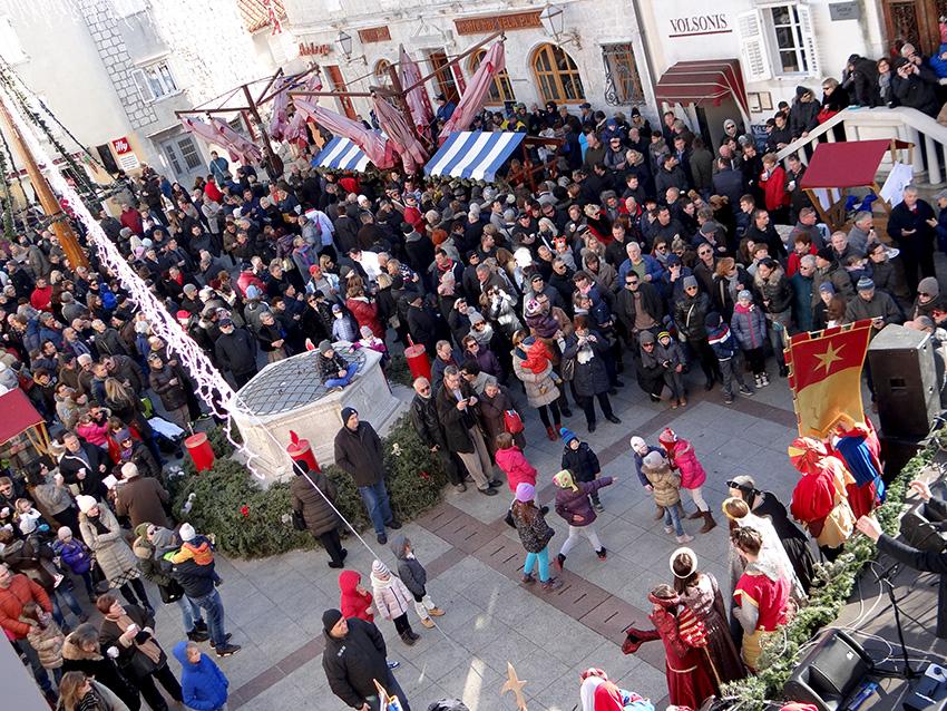 Već po ustaljenoj praksi, nakon niza prigodnih božićnih programa - humanitarnih akcija, koncerata i izložbi - ispraćaj Stare i doček Nove godine započeo je na prepunoj Veloj placi zdravicom gradonačelnika Darija Vasilića koji je Krčanima, ali i brojnim gostima, točno u podne poželio svako dobro u Novoj 2016. godini.