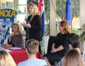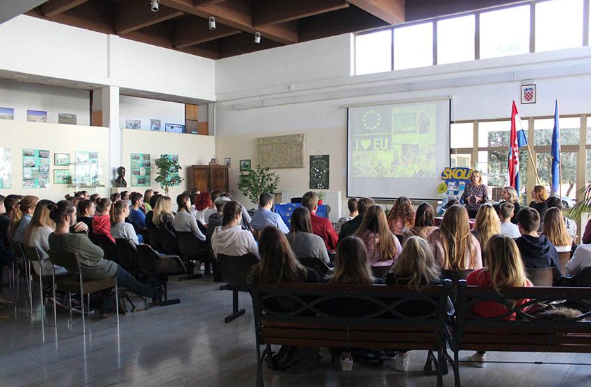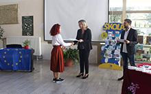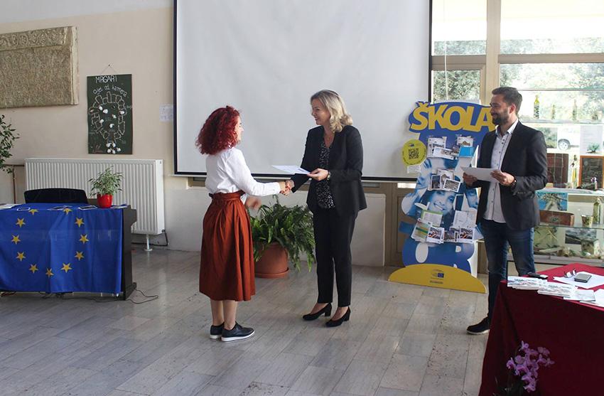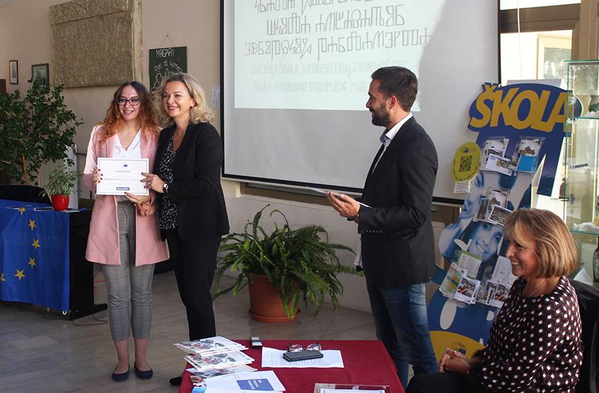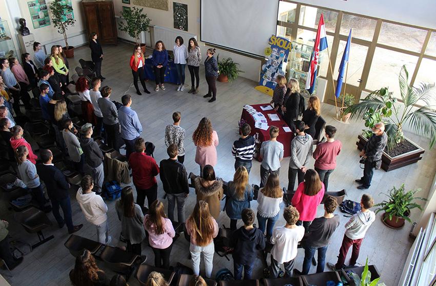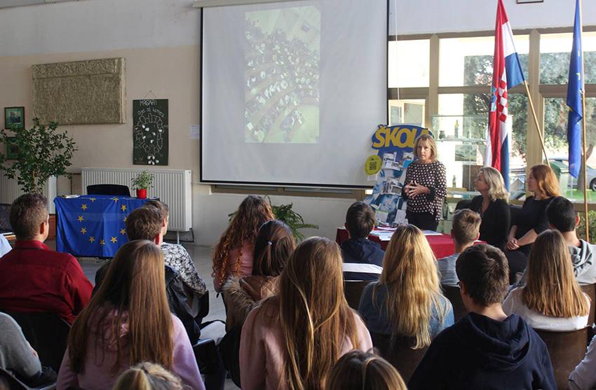 Ravnateljicu Đurđicu Cvitkušić potom je pripala čas da podsjeti na sve odrađene aktivnosti i ostvarene uspjehe srednjoškolaca koji su, proteklih godina, doprinijeli dobivanju status Škole ambasadora Europskog parlamenta, dok je profesorica Gordija Marijan, inače ambasadorica seniorka Europskog parlamenta, priznala kako se, zajedno sa svojim kolegama, smatrata osobom čiji je cilj, u ovom kontekstu, učenicima otvori prozor u svijet, ali i vrata kad na njih pokucaju.