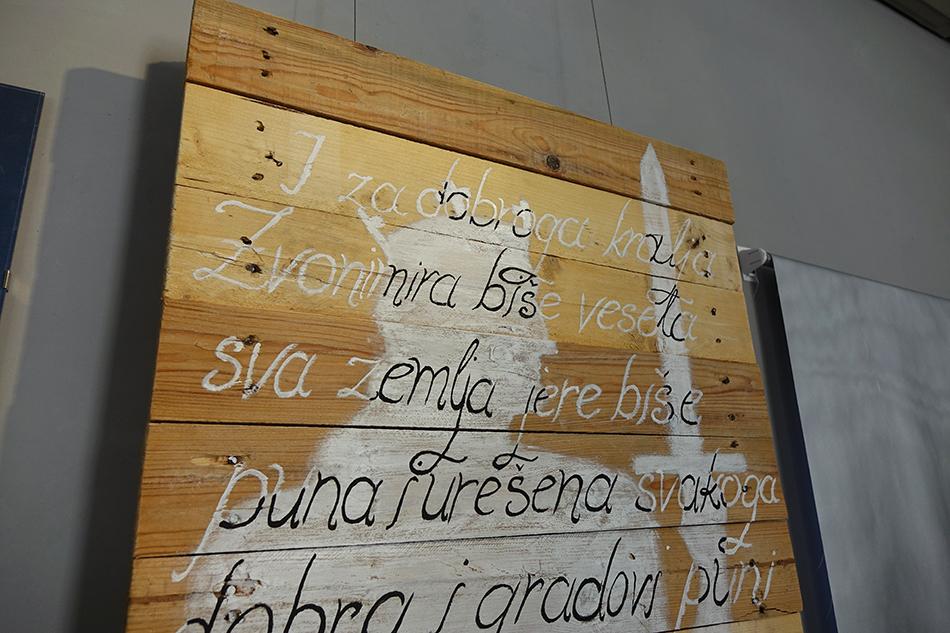 Dragi gosti, uzvanici, a prije svega učenici, uvodi Cvitkušić, zadovoljstvo mi je ove, 2018., godine, kada se, na inicijativu Europske komisije, slavi Europska godina kulturne baštine, predstaviti cjelogodišnji projekt Srednje škole Hrvatski kralj Zvonimir pod nazivom Stopama Krčkih legendi. Ovom izložbom, koja predstavlja tek segment školskog projekta, naši učenici zajedno sa svojim mentorima i vanjskim suradnicima, vode nas u prošlost, predstavljajući priče - povede - koje su nastale u vremenskom razdoblju od prahistorije, preko antike, pa sve do srednjeg vijeka. Krčke legende sažete i tiskane kao Vjeske povede, predstavljaju jedinstven primjer otočne usmene predaje koja se prenosila s generacije na generaciju, i koju su Boduli očito znali očuvati. Nažalost, usmena je predaja i inače u književnosti jako rijetko sačuvana, i kao takva gotovo da uopće nije bila valorizirana, međutim upravo zaljubljenici u otok Krk i otočnu povijest, prvenstveno povjesničari i književnici, uspjeli su tiskanom formom probuditi svijest o postojanju Krčkih legendi. Vodeći se njihovim iskustvom, ističe Cvitkušić, tako smo se i mi kroz ovu fotografsku i video priču, na trenutak vratili u prošlost te prošetali poviješću otoka Krka, za kojeg sada sa sigurnošću možemo kazati da predstavlja kolijevku kulture. Za kraj, zahvalila bih se svim učenicima koji su dali svoj doprinos realizaciji ovog projekta, kao fotografi, glumci, statisti, pjesnici i likovnjaci, ali i njihovim mentoricama - Ani Pasarić, Mirjani Komadini Mergl i Dariji Papa, te vanjskim suradnicima, prvenstveno fotografu Ivicu Brusiću Bruji na svesrdnoj asistenciji i radu na filmu Frankopanova ženidba, kao i Petru Kopanici, voditelju Udruge Frankopani Knezovi Krčki.