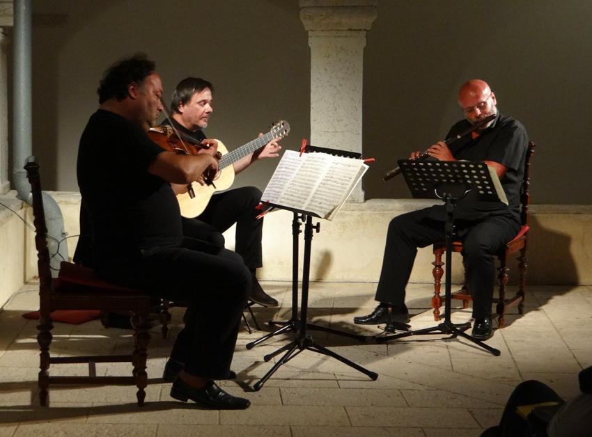 Trio, čije članove krasi bogato koncertno iskustvo na mnogim svjetskim pozornicama, za krčko su predstavljanje izabrali djela Wolfganga Amadeusa Mozarta (izbor iz opere Čarobna frula), Johanna Sebastiana Bacha (Trio sonata u D-duru) te za kraj Lea Brouwera (Paisajes, Retratos Y Mujeres), najpoznatijeg živućeg kubanskog suvremenog skladatelja, evocirajući, u izvedbi njegove numere, najrazličitija raspoloženja, od sjetnih, izrazito energičnih, pa sve do melodijski i ritmički inventivnih dijelova. Bio je to pogođen izbor za kraj koncerta koji je svojim neposrednom ljepotom u cijelosti zaokupio pažnju posjetitelja. Nakon glasnog aplauza i poziva na bis karizmatični glazbenici naposlijetku su publici poklonili izvedbu Tanga poznatog španjolskog kompozitora Isaaca Albéniza.