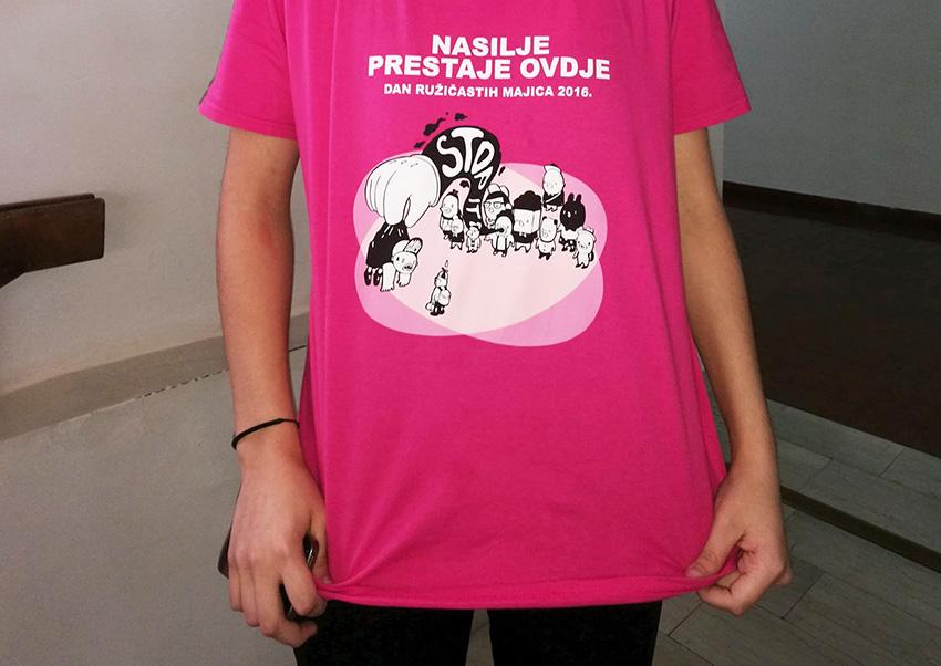 Začetak obilježavanja Dana ružičastih majica dogodio se kao znak protesta zbog incidenta koji se odigrao u jednoj američkoj školi. Naime, inicijativom školskih kolega na konstruktivan je i inteligentan način riješeno sustavno zlostavljanje dječaka posvećenog podršci liječenju teško bolesne majke. Ružičaste majice, koje su solidarno s dječakom nosili njegovi školski kolege, postale su prepoznatljiv simbol same inicijative, a kasnije i međunarodno prepoznate obljetnice. Centar za edukaciju i prevenciju nasilja, kao začetnik i nositelj ove ideje u Hrvatskoj, promocijom Dana ružičastih majica postigao je njezino prepoznavanje i prihvaćanje diljem zemlje, što znači da su se ove godine gotovo sve hrvatske odgojno-obrazovne ustanove, s oko 500.000 sudionika, priključile ovom hvalevrijednom pokretu.