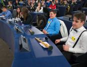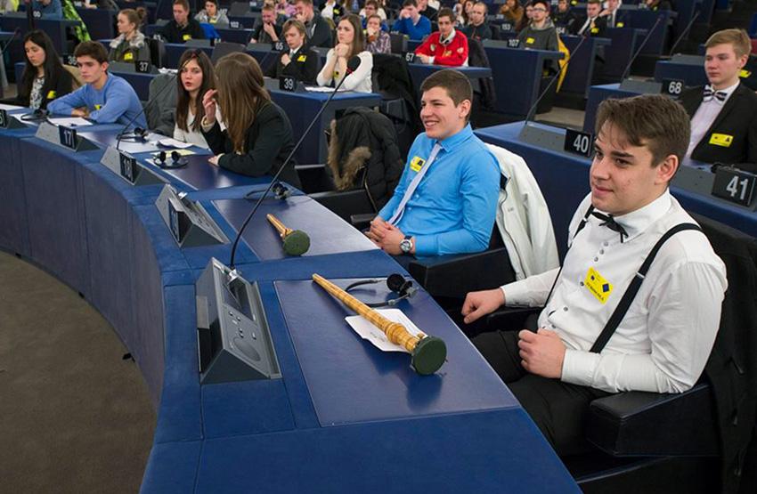 Krčani su radni dan u Strasbourgu proveli radeći kao zastupnici Europskog parlamenta, iskusivši u simulaciji rad europskih parlamentaraca, i to u dvorani za plenarne sjednice Europskog parlamenta, glasujući pritom o odlukama vezanim uz aktualna pitanja, a komunicirajući na engleskom i njemačkom jeziku. Učenički saziv ondje je bio podijeljen u šest višejezičnih radnih skupina te su sa sudionicima iz Austrije, Belgije, Bugarske, Češke, Hrvatske, Danske, Estonije, Francuske, Njemačke, Grčke, Irske, Italije, Latvije, Litve, Malte, Nizozemske, Poljske, Portugala, Rumunjske, Slovačke, Švedske i Španjolske raspravljali o mnogim recentnim temama vezanim uz okoliš i obnovljive izvore energije, slobodu informiranja i građansku kulturu, obilježavanje 2015. kao Europske godine razvoja, budućnost Europe, migracije i integracije te zapošljavanje mladih.