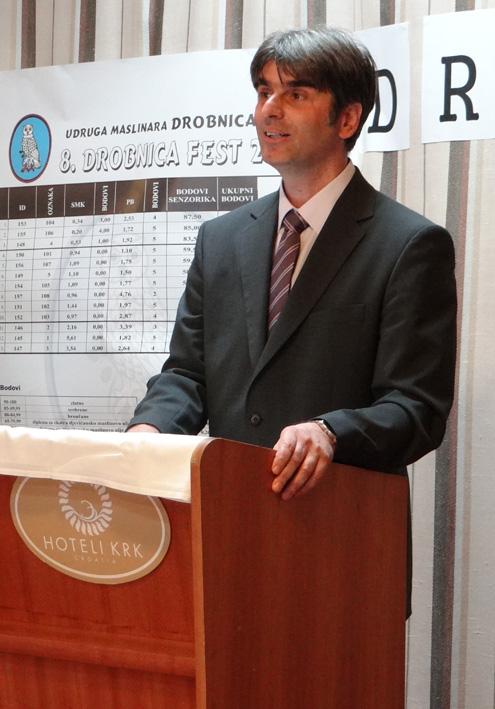 Izuzetno mi je drago da smo se danas okupili na 8. Drobnica festu, ističe na početku Vasilić, kao prvoj ocjenjivačkoj izložbi maslinovih ulja u Primorsko-goranskoj županiji. Ta nam činjenica dozvoljava da Krk s pravom smatramo maslinarskim centrom naše regije, pored čega valja izdvojiti i vrhunsku kvalitetu naših maslinovih ulja što potvrđuju ne samo ovdašnje ocjenjivačke izložbe već i one organizirane u drugim hrvatskim i europskim gradovima. Ono što maslinari grada i otoka Krka rade sigurno je značajno odskočilo od dana registracije Drobnice, jer puno je malih poduzetnika, obiteljskih gospodarstava i proizvođača koji su bili usitnjeni i neorganizirani, a koji su poticaj pronašli upravo u djelovanju ovog vrijednog udruženja čija su zalaganja generirala proizvodnjom, podignutom kvalitetom, motivacijom ljudi na otvaranje novih maslinika te prihvaćanjem važnosti svih oblika edukacije. Sve to zajedno sigurno je pridonijelo značajnom iskoraku u kvaliteti krčkih maslinovih ulja te danas s ponosom možemo kazati kako Krk ima jedan važan brendirani proizvod i kako upravo zbog njega mnogi turisti posjećuju naš grad i otok. Kruna čitave priče, odnosno desetogodišnjeg rada Drobnice, zaključuje Vasilić, svakako je certificiranje kojem svjedočimo, a taj certifikat zaštite izvornosti naziva Krčko maslinovo ulje predstavlja nešto čemu smo se zaista dugo nadali, a nakon kojeg nas očekuju neki novi postupci, i to najprije zaštite Krčkog ovčjeg sira, a potom i Krčkih šurlica.