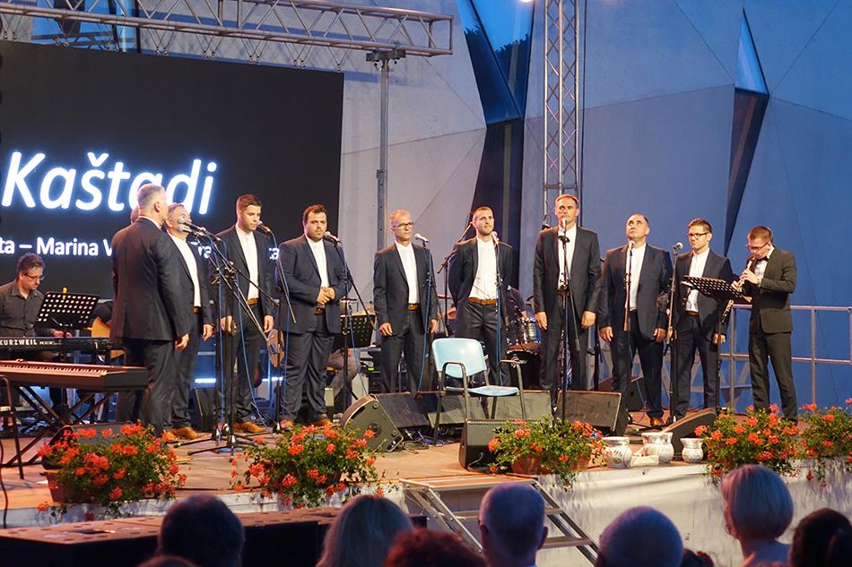 Večer je tako otpočela prigodnim videom kojim se klapa prisjetila svoje povijesti i bivših članova, ali i predstavila aktualni postav. Podsjetimo, Kaštadi su osnovani 1998. godine kao folklorna sekcija Kulturno-umjetničkog društva Poljica, pri Centru za kulturu Grada Krka. Od samog početka njihov umjetnički voditelj bio je pok. maestro Ivica Frleta, a naslijedio ga je, također vrlo uspješno, njegov sin Frane Frleta. Riječ kaštadi otkrivena je prilikom restauracije župne crkve u mjestu Poljica, a uklesana je na kamenom pragu jednog od njezinih prozora, i to glagoljicom. Kaštadima su se, naime, nekada nazivali ljudi koji su brinuli o crkvenom dobru, a upravo ta spoznaja bila je presudna da klapa dobije to ime, te tako simbolički preuzme brigu o očuvanju bogate otočne glazbene baštine. Kaštadi njeguju a capella izvedbe, ali i obrade pjesama uz gitaru i mandolinu, kao i prepoznatljiv klapski izričaj. U početku repertoar im je uglavnom bio sakralnog karaktera, no kasnije ga šire na obrade pučkih pjesama sjevernojadranskog i dalmatinskog primorja, odnosno na sve skladbe namijenjene (višeglasnom) klapskom pjevanju. Dosad su Kaštadi imali mnoge samostalne koncertne nastupe, a prije ovog, najrecentnijeg, objavili su još jedan hvaljeni nosač zvuka pod nazivom Otok od zlata. Iako je klapa tijekom svih tih 20 godina u više navrata mijenjala svoj sastav, sadašnji postav, koji je predstavljen i tijekom slavljeničkog koncerta, čine: Nikica Frleta, Lucijan Kosić, Dalibor Gajzler, Antonio Rožmanić, Frane Frleta, Marin Mirković, Karlo Ćiković, Davor Toić, Darko Volarić i Andrej Buvač.
