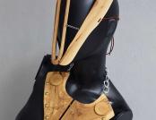– U današnjem svijetu, gdje modni trendovi brzo dolaze i odlaze, nakit se najčešće doživljava samo kao estetski dodatak, piše Ritoša. Iako njegova vizualna kvaliteta nije zanemariva, treba osvijestiti da nakit ima puno dublje značenje. Nakit je dio neverbalne komunikacije, ljudske povijesti i razvoja društva, a u mnogim kulturama odabir i nošenje određenog nakita imalo je višeslojna značenja i funkcije. Još u prapovijesti, ljudi su koristili prirodne materijale poput kostiju, školjaka i kamenja za kreiranje talismana i amuleta koje su koristili za zaštitu i prizivanje sreće te u obredima i inicijacijama. Nakit je često simbol statusa, ali i izraz osobnog stila te nosi duhovno i emocionalno značenje. Odabir materijala iznimno je bitan, ponekad u potpunosti definira izgled i vibraciju djela. Spretan majstor zna kako iz materijala izvući maksimum, kako raditi s njim, a ne protiv njega. Jedan od takvih majstora je i Franko Tončinić koji izrađuje nakit od drva masline. Njegovi radovi odaju dojam tajanstva i uvode nas u čarobni svijet u kojem se priroda i čovjek spajaju u savršenoj harmoniji. Oko nam se zaustavlja na finoj izradi, toplim nijansama i mekim šarama godova. Kružni oblici spajaju se srebrnom legurom u titrave nizove koji lagano padaju na prsa. Njegova vještina se sastoji u prilagođavanju tehnike i alata zadanom materijalu, na dubokom razumijevanju materijala i suživljavanju s njim. On dobro poznaje i poštuje karakteristike tog tvrdog i žilavog stabla i obogaćuje njegov potencijal. Baš kao što maslina, da bi dala plodove, zahtijeva posebne uvjete: sunce, kišu i protok vremena, tako i Franko kreira u određenom ritmu, u smiraju dana ili ranojutarnjim satima. Tradicionalnim metodama, bez upotrebe strojeva, on oblikuje dio po dio, reže i spaja ručno. Višestoljetne metode obrade drva zahtijevaju strpljenje, pažnju, strast, a nadasve vrijeme. Današnji svijet tehnologije sputava svojim hitnoćama i užurbanošću, ali Franko nalazi oazu, otkriva drevnu tajnu sporog, kontinuiranog rada i napredovanja. Ulazi u kreativan proces u kojem dokida vrijeme i komunicira s duhovima predaka. Taj duh predaka manifestira se u svim njegovim kreacijama, a posebno u maskama čiji oblici evociraju staroslavenska božanstva i vile. Predivne vile oživotvoruju se pred nama u čudesnim polu zakrivenostima: ponegdje vidimo samo oči ili usta, rame, ogoljeli vrat. Maska skriva samo dio, držeći nas budnim i zainteresiranima, što je jedna od glavnih funkcija maske - mami nas i daje anonimnost u kojoj možemo objektivizirati i/ili transcendirati subjekt koji ga nosi, istakla je Ritoša.