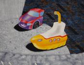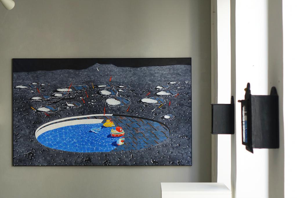 – Putnici na putovanju oko planete Zemlje nalaze trenutke predaha na veselim mjesečevim kupalištima. Njihovi dani ispunjeni su galaktičkim banketima u restoranima s pogledom na Saturnove prstenove i privatnim koncertima gdje umjetna inteligencija komponira simfonije po njihovim raspoloženjima. Vrijeme im nije ograničeno, jer zahvaljujući najnovijim medicinskim terapijama, stanice se regeneriraju brže nego što stare. Zemlja više nije poželjna destinacija, zagađena je i jadna, pa turisti u hordama stižu na Mjesec. Dolaze da osunčaju svoju guštersku kožu i plivaju u mlačnim jezerima osvjetljeni zvijezdama. I dok brzaju prema sljedećoj orbitalnoj postaji za sobom ostavljaju plastične vrećice i sunčane naočale. Ove futurističke vizije, u tehnici akrila na platnu, Zdravko Milić dočarava kroz vizure mjesečevog pejzaža, gdje primamljivi prizori alternativne sadašnjosti i budućnosti prizivaju misli o godišnjem odmoru na Mjesecu. Gradacijom sivih tonova majstorski oslikava robusnu površinu Mjeseca, a na horizont smješta vrh s kojeg je uočljiva vijugava staza. Ona nas upućuje na to da se na površini dešava kretanje. Često je u prvom planu krater ispunjen vodom u kome plutaju igračke - dječji kamioni, avioni i brodići, ili se pak pojavljuje neka druga surealna sinteza, primjerice klasicistička ženska kamena figura koja mjesečev krater pretvara u fontanu. Ironičan i zabavan, a istovremeno ozbiljan, autor se kritički osvrće na pohlepu i potrebu ljudskog roda da kolonizira i prilagodi svaki kutak svemira sebi. Kritika je to konzumerizma, ekološke nebrige i suludog, autodestruktivnog stanja u kojem danas živimo. Njegov Mjesec iz budućnosti je groteskno poznat, podsjeća pomalo i na hrvatsku obalu ljeti; prekriven ostacima plastike, upućuje nas na civilizaciju koja ni u svemiru ne može pobjeći od vlastitog otpada. Uz ekološku nebrigu, konzumerizam i kolonijalizam ovdje nailazimo i na reference o srozavanju ljudskog duha, kojeg danas više zaokupljaju igračkice nego znanost, šareni omoti nego sadržaj. Danas, u svijetu kapitala, otkrivamo kako materija ne oslobađa, već kondenzira patologiju društvenih hijerarhija. Svjedočimo spektaklu laži, nadzora, fetišizaciji posjedovanja i dekadenciji intelekta. Milić, dakle, na virtuozan i duhovit način oslikava apsurde današnjeg vrijednosnog sustava i poziva nas da se kritički osvrnemo na vlastite odluke i izbore. Hoćemo li i dalje biti društvo koje glorificira profit iznad opstanka, ili ćemo prepoznati apsurd pohlepe? Naposljetku, pitanje nije može li čovječanstvo dosegnuti zvijezde, već hoće li ga ondje dočekati išta drugo osim vlastitog nihilizma, piše Ritoša.