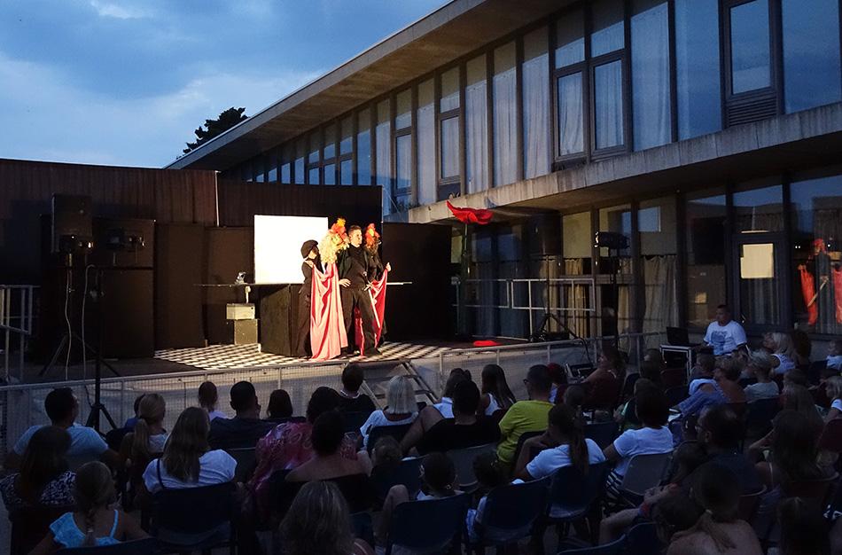 Drugi ovogodišnji program namijenjen najmlađim posjetiteljima Ljetnih priredbi, lutkarsko-igrana predstava Ljepotica i zvijer, kreirana u produkciji Kazališne družine Ivana Brlić-Mažuranić iz Slavonskog Broda, na Sceni Zidine odigrana je 25. srpnja, i to pred lijepo popunjenim auditorijem.