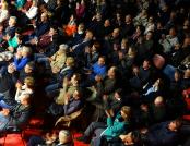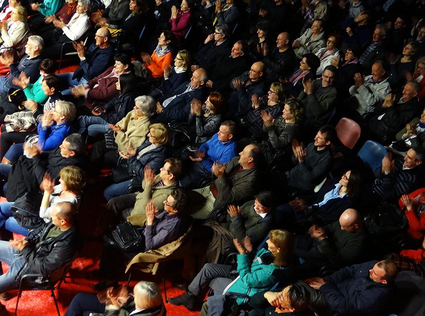 Nakon čitavog niza odrađenih komičarskih nastupa i objavljenih knjiga, Ajme nama s njima, novi stand-up/cabaret performans Arijane Čuline, pred iznova u cijelosti ispunjen krčki auditorij, donio je svježu porciju duhovitih, ironičnih, hrabrih, ali i provokativnih priča inspiriranih našom nimalo dosadnom svakodnevicom, s time da su tematski setovi, što su okupljene uspjeli nasmijati doslovno do suza, bili međusobno ispresijecani songovima uz gitarsku podršku bivšeg člana Daleke obale - Jadrana Vuškovića.