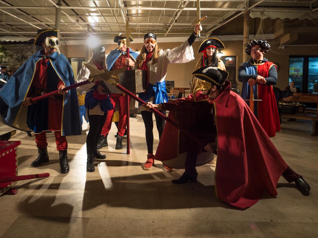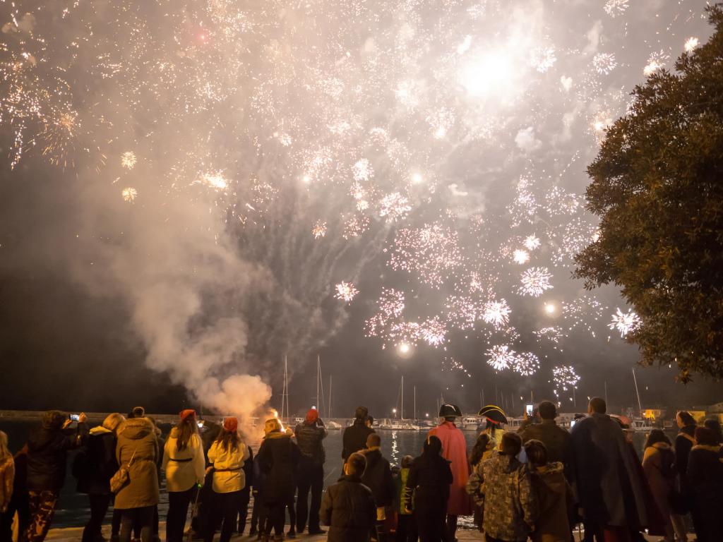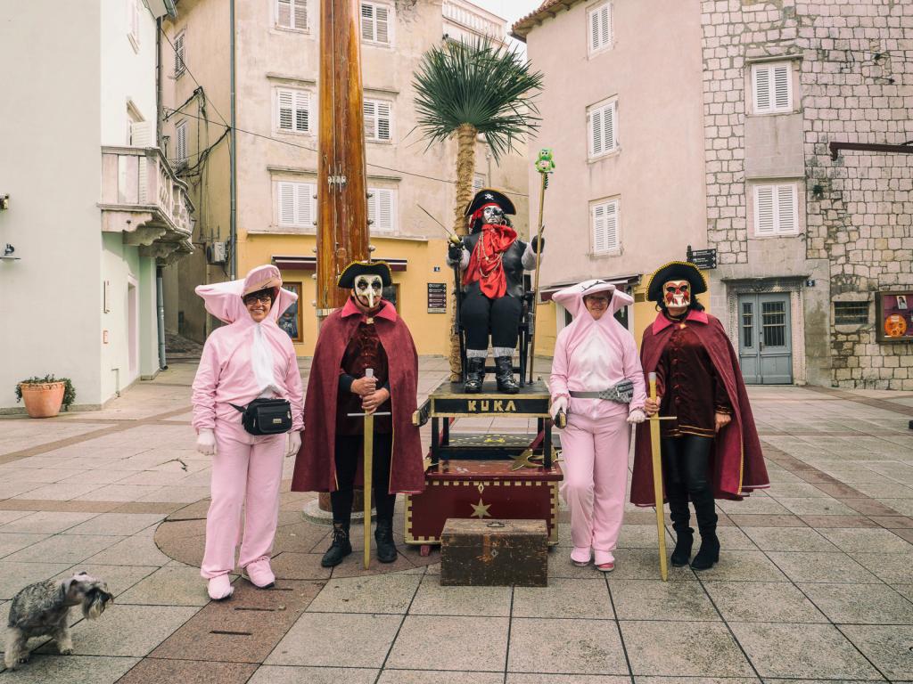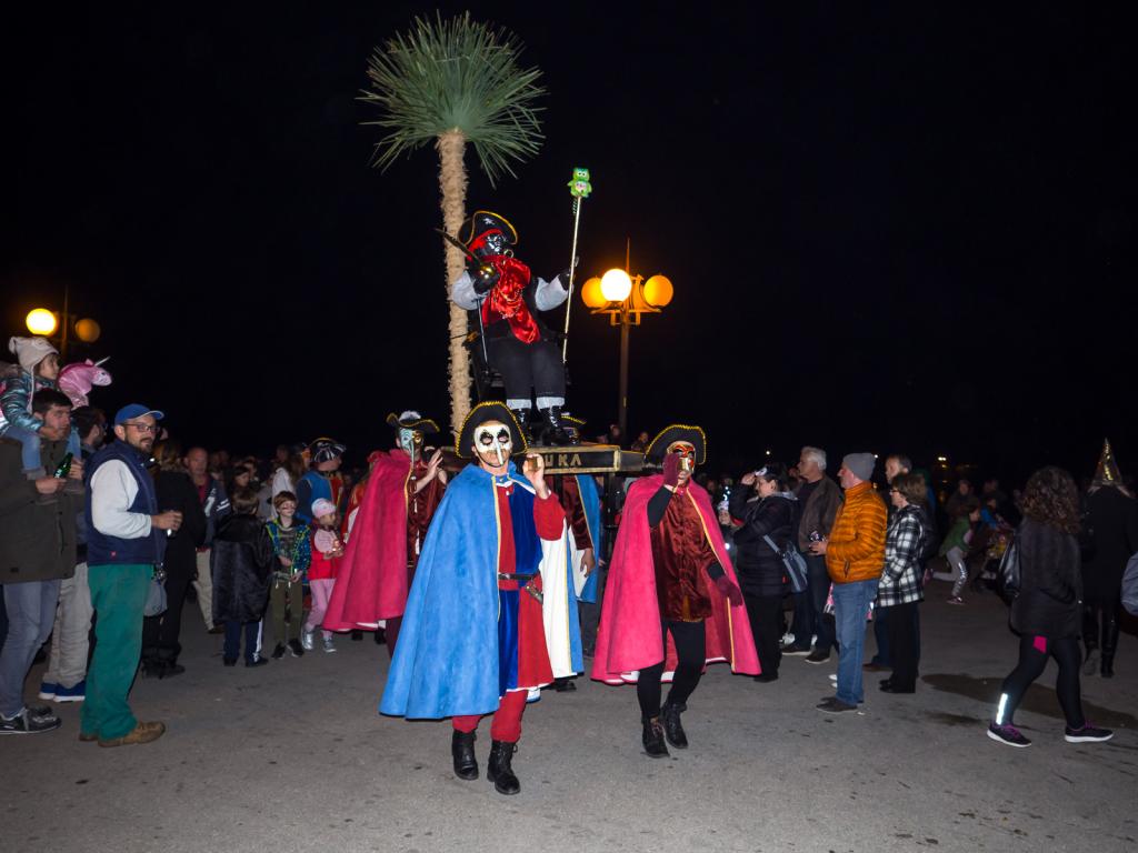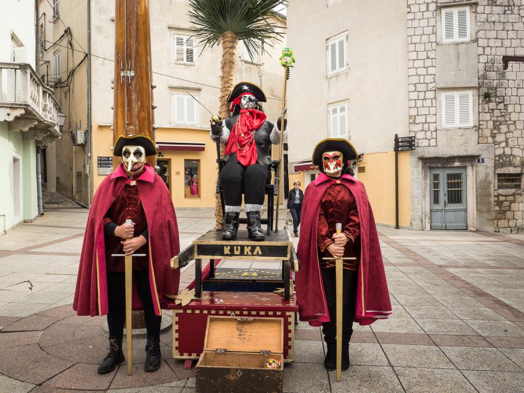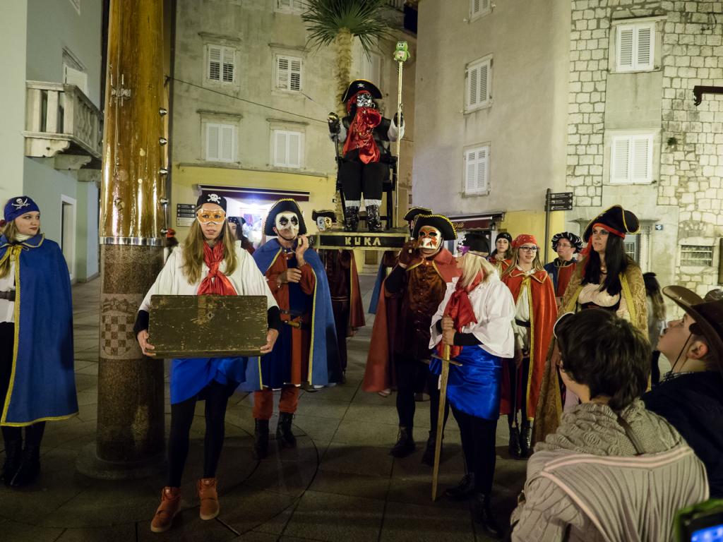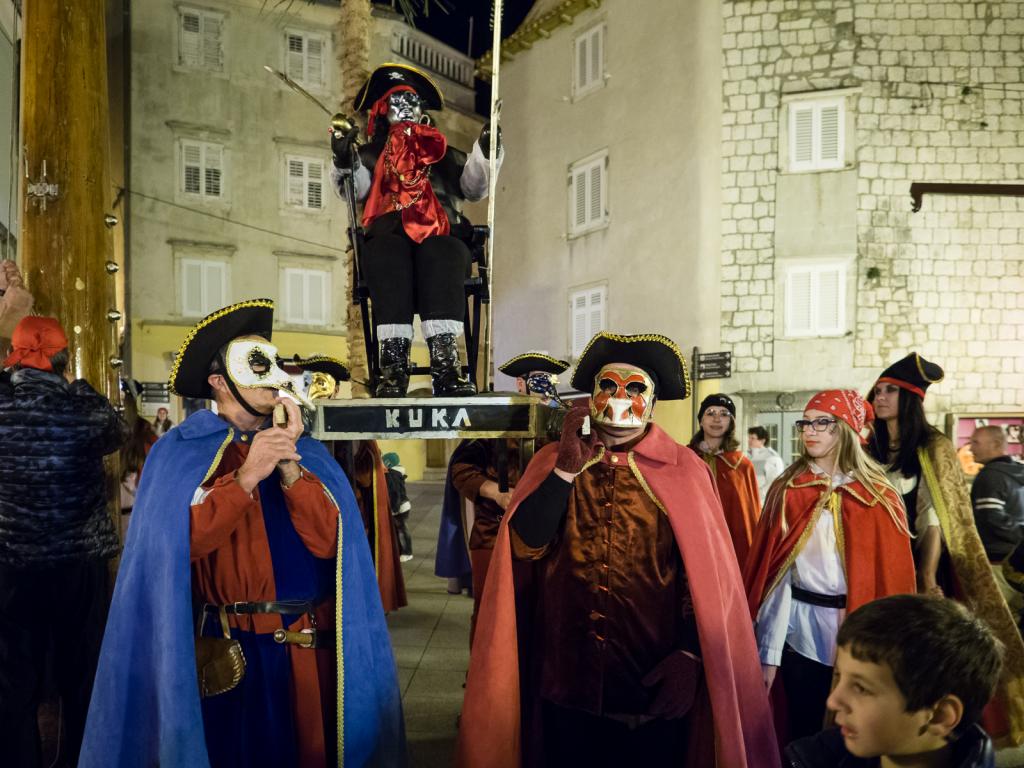 Osim mnogih Krčana okupljenih na prostoru Gradske rive, karnevalsko je vrijeme, 05. ožujka, ispratila i maskirana povorka čije je čelo još jednom zauzeo nesretni mesopust - kapetan Kuka, kradljivac poznatog krčkog blaga, ali i krivac za sve u prošloj godini proživljene nedaće. Da bismo u proljetni period krenuli bez tereta što ga on simbolizira, nakon suđenja i osude pust je konačno spaljen, a s njim su, pretpostavimo, grad napustili i već pomalo zamorni duhovi zime.