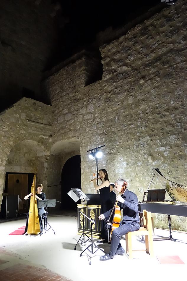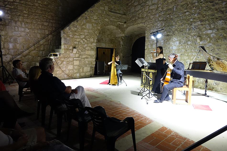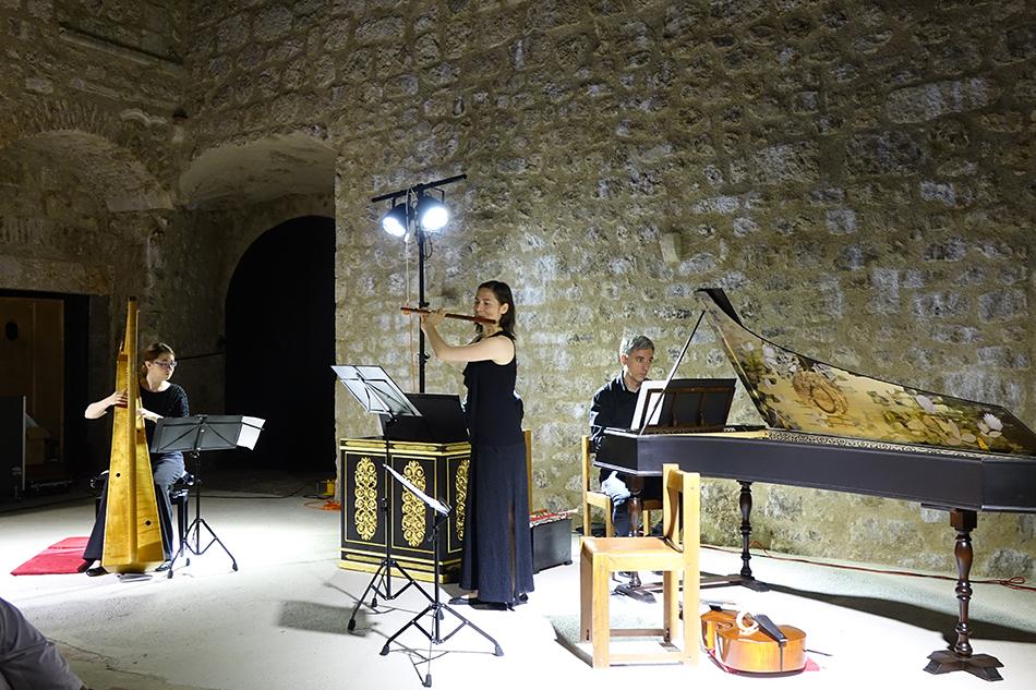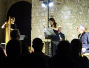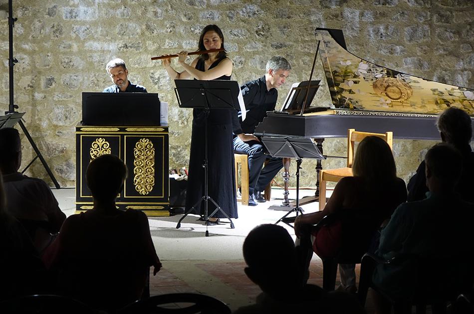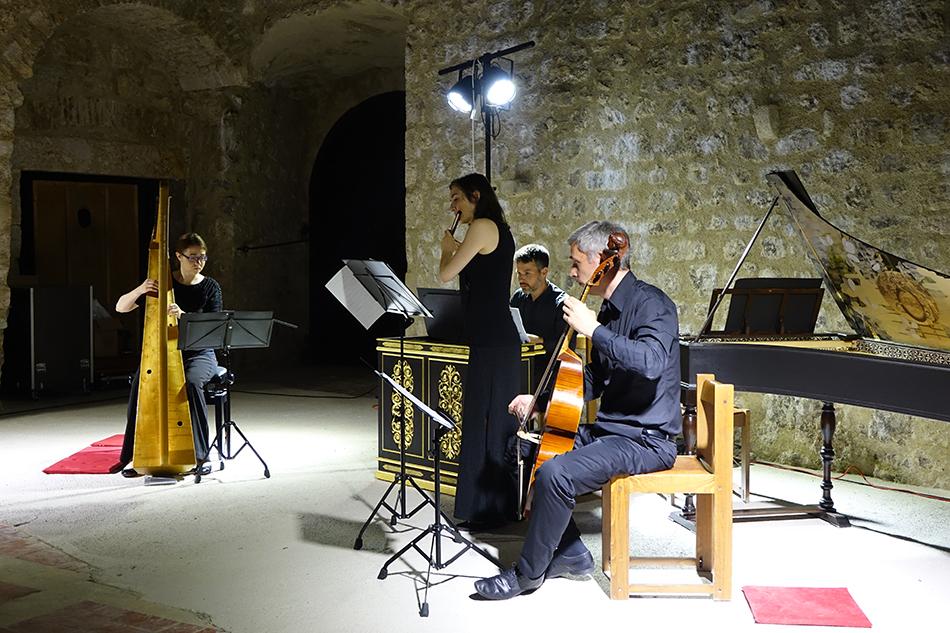 Anne Freitag (renesansna poprečna flauta), Domen Marinčič (viola da gamba), Tomaž Sevšek (čembalo i orguljski pozitiv) i Claire Piganiol (renesansna harfa) zaista virtuoznom svirkom okupljenima u drevnom Kaštelu predstavili su renesansno glazbeno nasljeđe, izvodeći djela europskih skladateljskih velikana 15. i 16. stoljeća poput Costanza Feste, Francesca Stivorija, Giulija Schiavettija, Orlanda di Lassa, Johna Dowlanda, Giovannija Pierluigija da Palestrine, Cipriana de Rora ili Cesara Negrija, što je na kraju rezultiralo snažnim aplaudiranjem i pozivom na bis. (Renesansni instrumentalisti često su izvodili glazbu koju danas najčešće povezujemo s vokalnim izvedbama. Čembalist, orguljaš ili harfista svirao je poznati višeglasni madrigal ili šansonu, a flautist ili gambist ga je pratio s ukrašenom verzijom odabranog djela. Tradicija improviziranih ukrasa koje su Talijani zvali diminucije ili passaggi sadržana je u knjižicama koje su uglavnom objavljivane u Veneciji, između 1535. i 1626. godine.)
