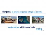 Ministarstvo regionalnoga razvoja i fondova Europske unije objavilo je Natječaj za prijavu projekata udruga na otocima u 2019. godini kojim se udrugama na otocima dodjeljuje financijska potpora osigurana u Državnom proračunu Republike Hrvatske za 2019. godinu i projekcijama za 2020. i 2021. godinu (Narodne novine, broj 113/18).