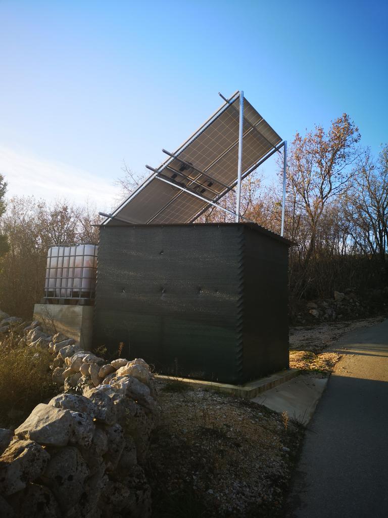 Prema riječima proizvođača pumpe, tvrtke Imperium d.o.o., instalirani sustav je kapaciteta do 10.000 litara dnevno (protok varira ovisno o količini Sunčeve svjetlosti). Sustav crpi snagu Sunca sa sedam kvadratnih metara fotonaponskih panela i u potpunosti je automatiziran, što znači, da se s prvim zrakama Sunca pumpa sama pali, crpeći vodu do onog trenutka dok se spremnici ne napune. U trenutku kada se spremnici napune pumpa se gasi, a potom automatski pali kada nivo vode u spremnicima opadne. U slučaju da u bunaru nestane vode, ugrađen je senzor razine vode. Tada se pumpa gasi što znači da nema bojazni od rada na suho, odnosno od oštećenja pumpe. Dodajmo tome kako je pumpa robusna i hlađena uljem čime se mogućnost pregrijavanja svodi na minimum, a kao i cijeli sustav radi na istosmjernoj struji od samo 48 volta.