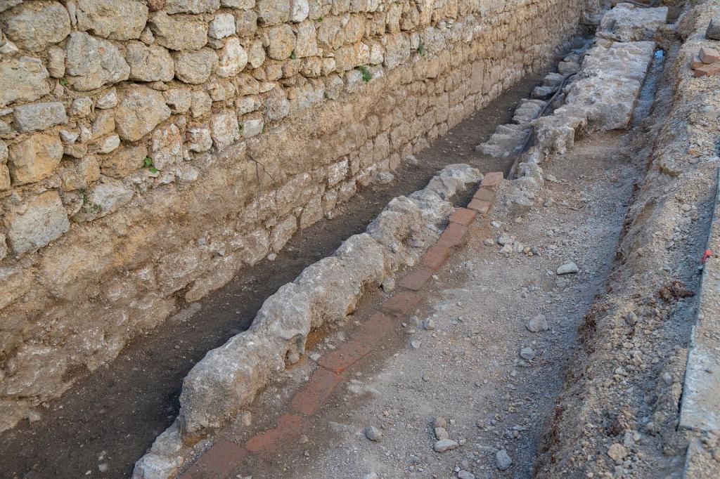 U prostoru u kojem se nalazi i mozaik Triton otkriveni su ostaci zidova i kanala antičkih termi. Istovremeno, u zoni Vrata slobode – gdje su istraživanja provedena kao preduvjet za građevinske radove – pronađene su srednjovjekovne ulice i zidine.