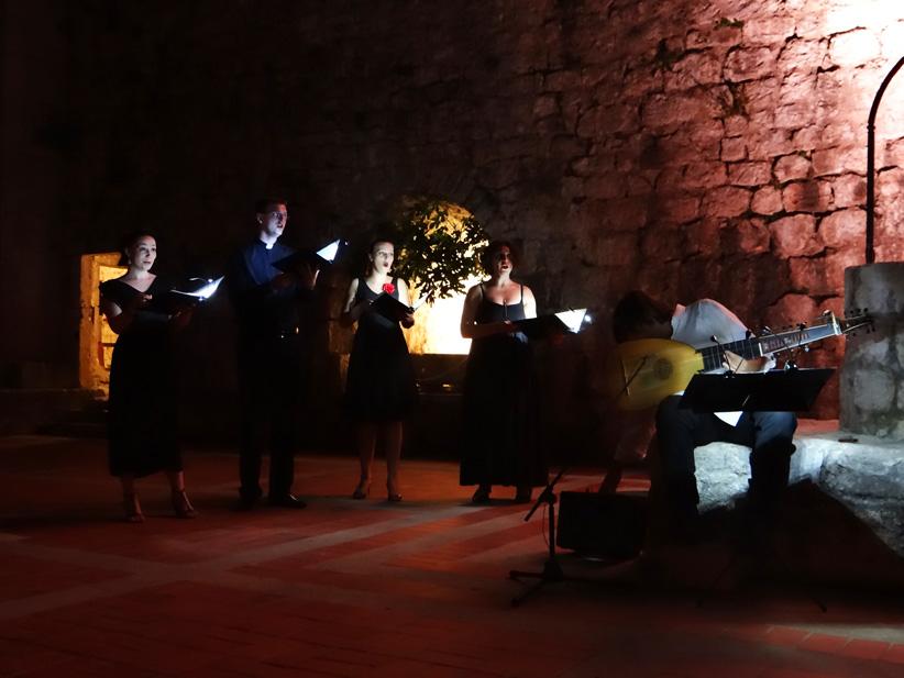 Krčkoj publici okupljenoj u Frankopanskom kaštelu, Vokalni ansambl Antifonus specjaliziran za izvođenje rane glazbe i Edin Karamazov, predstavili su dio bogatog korpusa renesansnog glazbenog nasljeđa, izvodeći djela poznatih europskih, ali i skladatelja s ovih prostora: Jeana Moutona (Nesciens Mater), Josquina des Preza (Mille Regretz), Tomasa Luisa de Victorie (Ave Maria a 8), Francescoa Spinacinoa (Pavana alla Spagnola), Giovannija Pierluigija da Palestrine (Stabat Mater), Franciscusa Bossinensisa (Ricercari) i Ivana Lukačić (Quam pulchra es).