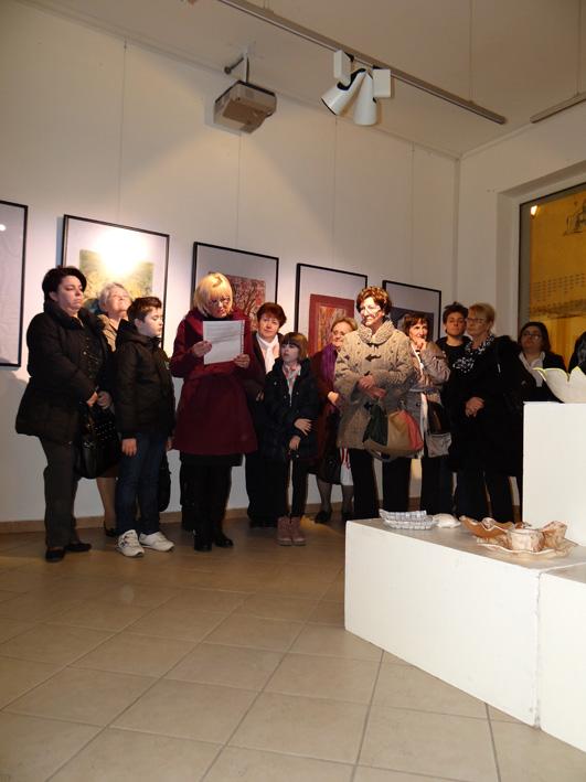 Zadovoljstvo mi čini uoči Međunarodnog dana žena, navodi Pavačić, u prigodi predstavljanja radova likovne sekcije Zajednice Talijana Krk, pozdraviti sve okupljuljene. Danas smo dobile priliku ukazati na naše radove u različitim tehnikama, poput batika, keramike ili reljefne (3D) slike, koji nastaju s puno uložene ljubavi, ali i truda, kako bi se mogli postići određeni rezultati. Ova izložba tako dokazuje da našoj Zajednici, podsredstvom likovnih radionica, za rukom polazi upotpuniti kalendar događanja u našem gradu, što svakako treba zahvaliti mentoricama Luciani Hlupar Trinajstić i Božici Žic koje nam svakodnevno prenose ljubav prema likovnosti. I dalje se možete nadati, zaključuje Pavačić, da ćemo nastaviti s njegovanjem likovnog izričaja, što znači da od vas očekujemo podršku kako bismo se i ubuduće imali prilike susretati i družiti na nekoj od naših izložbi.