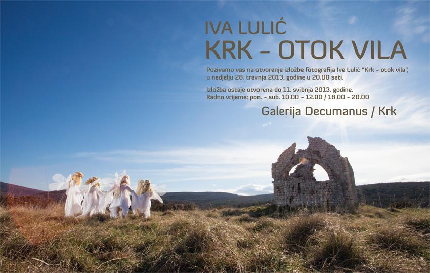 Otvorenje izložbe fotografija Krk - otok vila autorice Ive Lulić održati će se 28. travnja 2013. godine u krčkoj Galeriji Decumanus s početkom u 20.00 sati.Radi se o projektu kojem je jedna od zadaća na specifičan način dokumentirati otočne lokacije (izabrane u suradnji s općinama, turističkim zajednicama i Javnom ustanovom Priroda), koje su pretvorene u scenografiju vilinske priče s uporištem u narodnoj predaji - Krčkim legendama (Vêyskim povêdama). Snimanja na krčkim lokacijama započela su početkom travnja, a vile i vilenjake tom su prigodom utjelovili krčki vrtićari, osnovnoškolci i srednjoškolci te mališani iz Dječjeg doma Vladimir Nazor u Karlovcu.