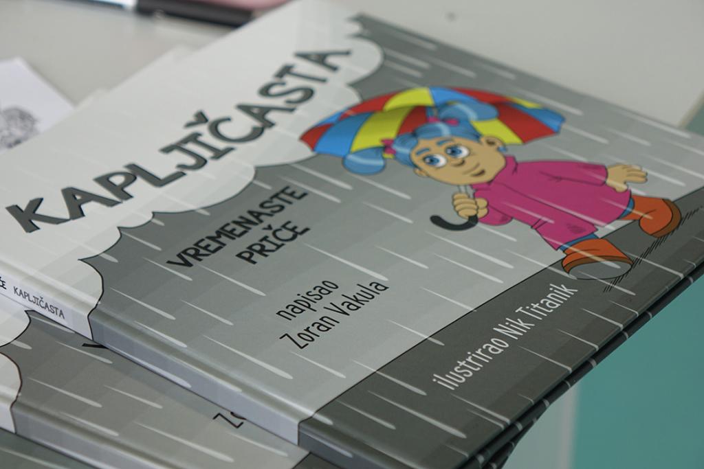Ovom prigodom najmlađim školarcima podijeljen je vrijedan i nadasve prikladan poklon - edukativna slikovnica Vremenaste priče: Kapljičasta, čiji tekst potpisuje Zoran Vakula, a ilustracije Nik Titanik. Ova slikovnica dijelom je projekta, tj. serije meteo-slikovnica Vremenaste priče kojima je cilj mališanima približiti neke često spominjane meteorološke termine kako bi kasnije bolje razumjeli i imali koristi od meteorološke informacije, posebice u doba sve očitijih klimatskih promjena i globalnog zatopljenja. Kapljičasta je peta od dvanaest ukupno planiranih slikovnica na temu meteorologije, namijenjenih primarno starijim vrtićkim skupinama i nižim razredima osnovne škole. Ova zanimljiva publikacija poučava rosi, rosulji, kiši i ostalim kapljičastim oborinama (kako nastaju; koje su kada korisne i štetne; najveće godišnje, mjesečne i dnevne količine oborine dosad izmjerene u Hrvatskoj...), međutim ne donosi samo uzbudljivu sliko-priču, već je djelomično i bojanka te sadrži križaljku, premetaljke i rebuse.