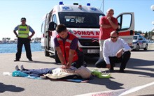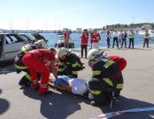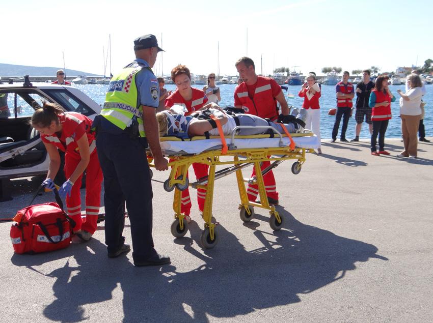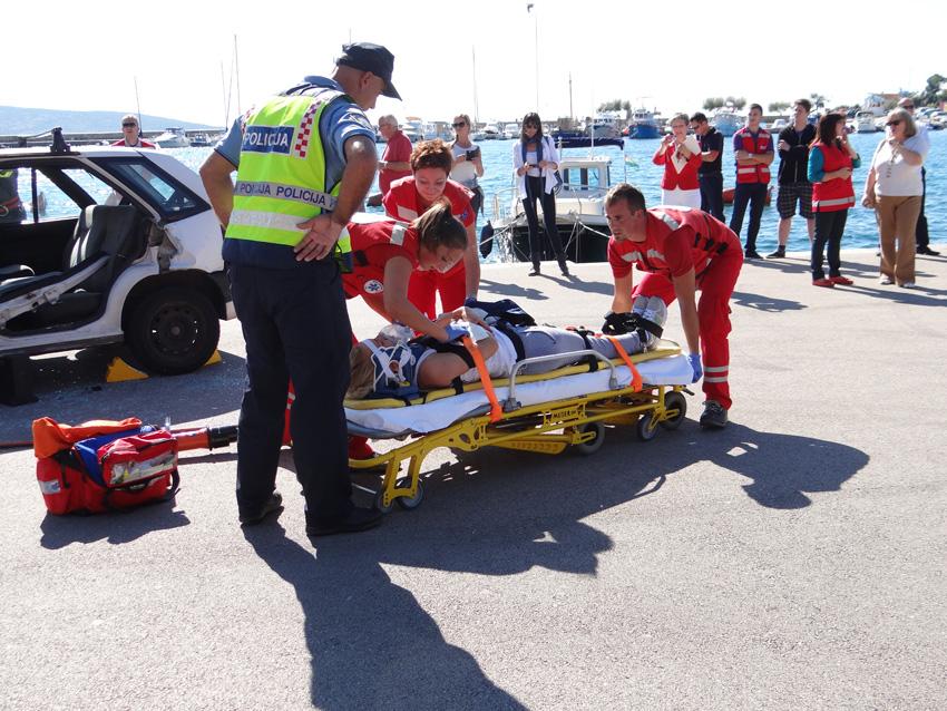 Na prigodno označenom štandu, 16. rujna 2014. godine, nedaleko Sunčanog sata, organizirano je besplatno mjerenje tlaka i šećera u krvi, dok je istovremeno plato rive pretvoren u scenografiju pokazne vježbe spašavanja osoba ozlijeđenih u prometnoj nesreći. Tu su vježbu, građanima i okupljenim školarcima, zajednički demonstrirali djelatnici Javne vatrogasne postrojbe Grada Krka, Hitne medicinske pomoći Krk i Policijske postaje Krk te volonteri Gradskog društva crvenog križa Krk, dok je narativni dio akcije bio povjeren čelniku krčkih vatrogasaca Dinku Petrovu. Osim ukazivanja na važnost pružanja prve pomoći kao prvog i najvažnijeg koraka u spašavanju ljudskih života, zadaća ove demonstracije bila je i podsjetiti na odgovorno ponašanje u prometu, kao i potaknuti prisutne na učenje i njegovanje vještina prve pomoći, kako bi ih u slučaju (prometne) nesreće bili spremni brzo i pravilno pružiti.