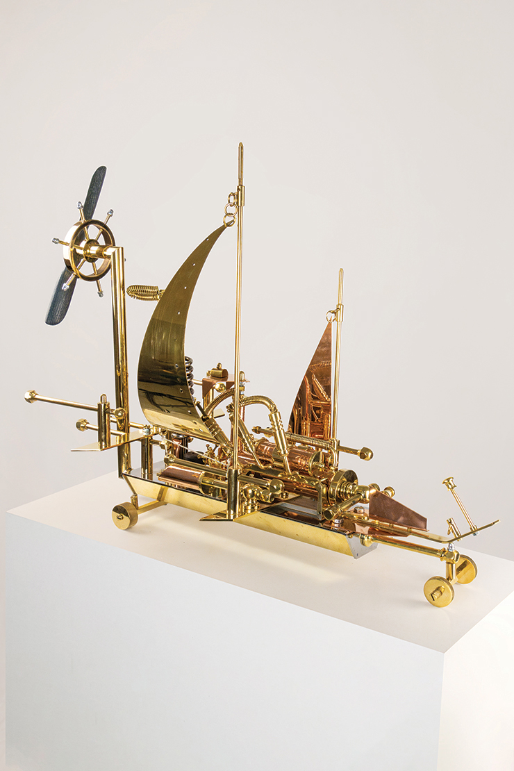 – Krajem 20. stoljeća u literaturi ZF žanra pojavio se termin steampunk; ovaj izraz prvi su koristili književnici K. W. Jeter, James Blaylock i Tim Powers, danas prepoznati kao pioniri žanra, istaknula je Luisa Ritoša pišući o radovima Zoltana Horvata Cološa. Steampunk uskoro postaje određena estetika, a moguće i etika, kako u književnosti tako i u ostalim umjetničkim pravcima. Ona kombinira elemente viktorijanskog doba i futurističkih tehnologija, u kojoj se stvaraju alternativne povijesne vizije, jedinstvene fuzije prošlosti i budućnosti. Danas je steampunk zanimljiv subkulturni, likovni i književni pokret koji zadobija sve veći momentum. U radu Zoltana Horvata Cološa prisutne su glavne karakteristike steampunk estetike: naglašena mehanika, vidljivost svih dijelova mehanizma (cijevi, zupčanici, žice), miješanje materijala, i povijesnih razdoblja, međutim autor ima znatan pomak od steampunk žanra. Naime, klasični steampunk modeli spajaju već postojeće elemente, a on mnoge dijelove kompletno sam izrađuje. U tome se ističe kao izvrstan zanatlija koji kombinira minimalno sedam zanata. Vidimo stručnost u struganju, varenju, poliranju, lakiranju, limariji, origamiju i drugim zanatima. Materijali koje najčešće koristi su drvo javora, staklo, bronca i mesing. Izbor tih materijala upućuje na to da autor teži vrsnoći, da mu je bitna dugovječnost i kvaliteta rada, koju, možemo slobodno reći, majstorski dostiže. Precizna elegancija izrade stapa se s dojmom raskoši i ekskluzivnosti. Drvo, svojom prirodnom teksturom i toplinom pruža kontrast hladnim metalnim dijelovima, čime skulpture dobivaju dozu organskog. Bogatim detaljima, sjajem i oblikom ovi nas radovi privlače da im priđemo bliže i pokušamo odgonetnuti ne samo njihovo značenje, već i prijašnju funkciju pojedinih dijelova. Primjećujemo da se neki sastoje od komada muzičkih instrumenata, uočavamo trubu, violinu, klarinet i saksofon. Ostarjeli ili odbačeni muzički instrumenti dobivaju novi život, novi smisao i novu svrhu.