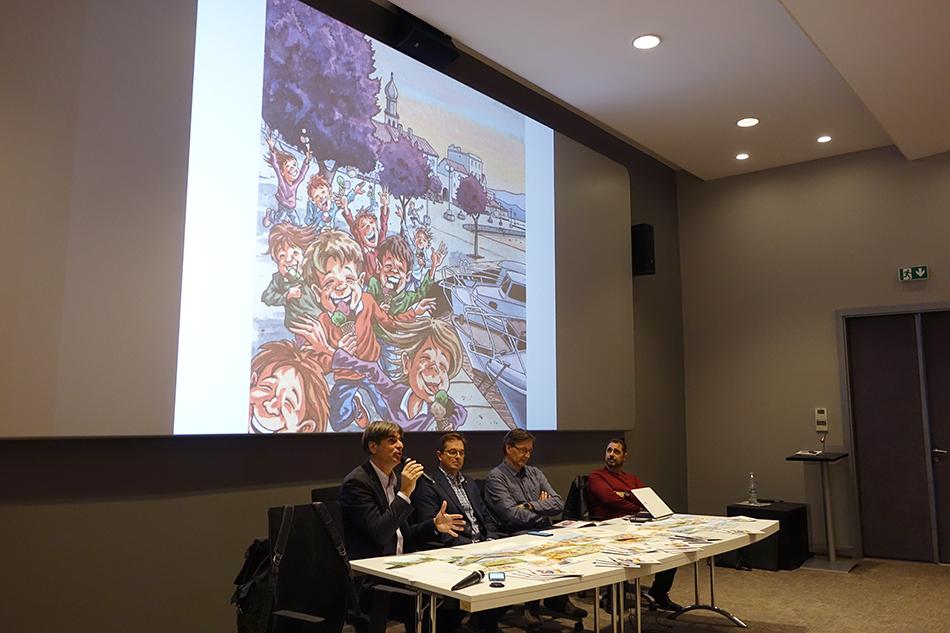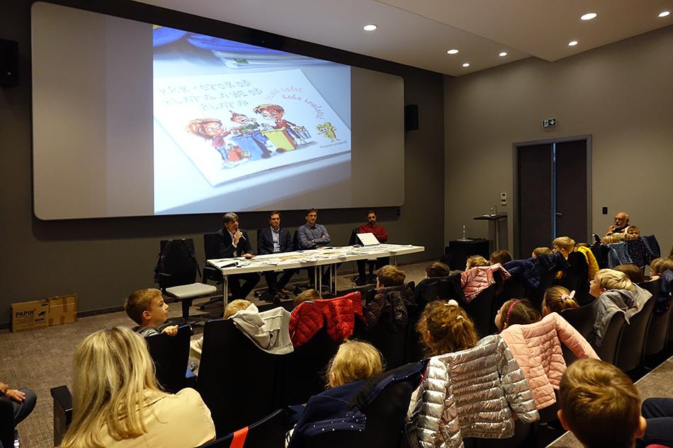 O slikovnici i specifičnom kontekstu njezinog nastanka redom su kazivali grafički urednik Igor Gržetić, krčki gradonačelnik Darijo Vasilić, predstavnik otočnog Komunalnog društva Ponikve eko otok Krk Dejan Kosić te netom spomenuti autori koji su svatko iz svoje perspektive predstaviti odrađeno, ono napisano i ono naslikano, a okupljene mališane - stotinjak predškolaraca i školaraca - tako izazvali na postavljanje zanimljivih pitanja.