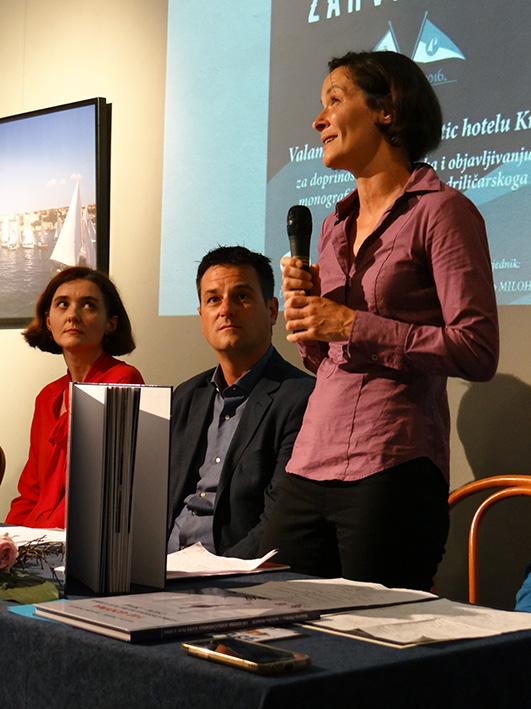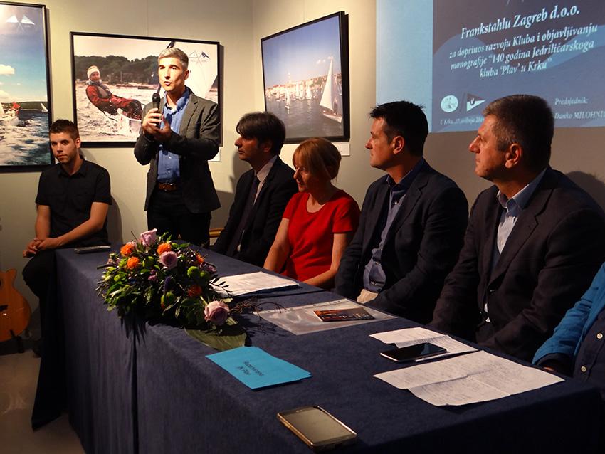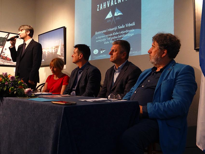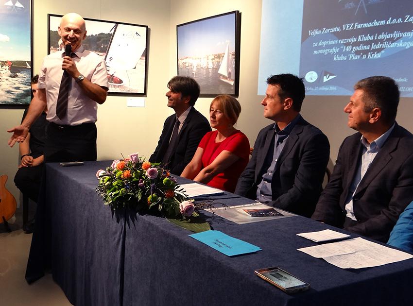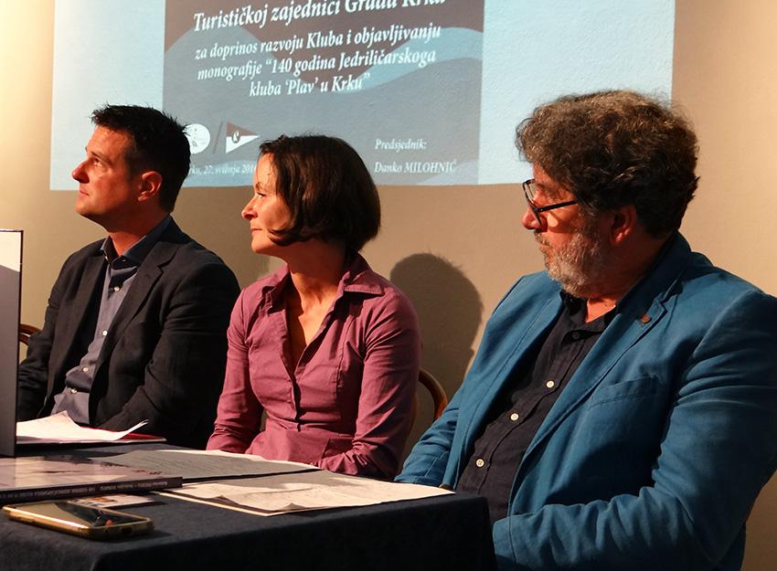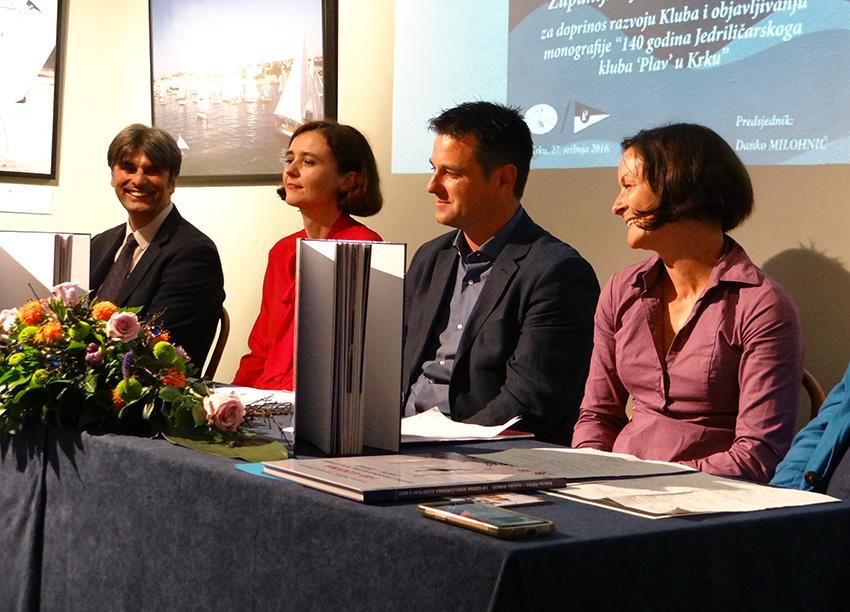 Nakon sjednice Skupštine koja je zatvorena riječima podrške prethodno spomenutih uzvanika, red je došao i na predstavljanje monografije 140 godina Jedriličarskog kluba Plav Krk (1876. - 2016.), a o kojoj su redom kazivali Ksenija Čulina, direktorica Novinarsko-nakladničke kuće Glosa te autori Katarina Prebeg i Nedeljko Dunato.