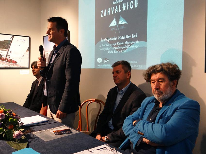 Velika mi je čast da u ovoj posebnoj godini za grad, ali i hrvatsko jedrenje, priznaje Vasilić, u prigodi proslave 140. godišnjice Kluba, možemo predstaviti novu fotomonografiju - 140 godina Jedriličarskog kluba Plav Krk (1876. - 2016.). Jer po prvi put u dugoj povijesti Kluba uspjeli su se prikupiti mnogi zanimljivi podaci i sadržaji te u nakladi riječke Novinarsko-nakladničke kuće Glosa objaviti knjiga o sveukupnoj povijesti Kluba čije tekstove potpisuju Nedeljko Dunato i Katarina Prebeg. Naš grad je kroz svoju 2.000 godina dugu povijest, nastavlja Vasilić, čvrsto vezan uz more, vjetar i jedrenje, a sve od dana kada su južni gradski bedemi izranjali iz mora brzi liburnijski brodovi isplovljavali su i uplovljavali u krčku luku, što se nastavilo stoljećima. Tako i Krčki statut iz 1388. govori o prvoj krčkoj rivi na kojoj su tim drevnim pravnim aktom bila propisana pravila za pomorski promet te ukrcaj i iskrcaj tereta. Krk je također jedan od šest hrvatskih gradova koji je 1571. u Lepant poslao svoju galiju, što znači da se 630 mornara i galijota otisnulo iz krčke luke i krenulo u rat kako bi podržali nastojanja Svete lige, a njihov zapovjednik Krčanin Ljudevit Čikuta svoje je posljednje počivalište pronašao upravo u korpusu Krčke katedrale, neposredno pred glavnim oltarom. Međutim, najintenzivnije razdoblje pomorstva i jedrenja, primjećuje Vasilić, upravo je 19. stoljeće, stoljeće kada je osnovan i Plav. To su stoljeće u gradu Krku obilježila dinamična društvena zbivanja, ali i djelovanje poznatog kolekcionara Nikole Udine Algarottija, koji je gradu u nasljeđe ostavio vrijednu zbirku muzikalija i mnoge muzičke instrumente, te aktivnosti biskupa Antuna Mahnića, osnivača krčke tiskare. Već tada Krk je pokazivao karakter prave urbane sredine, što znači da je u takvom okruženju osnovan i Jedriličarski klub Plav, a na tradiciji našeg Kluba temelji se i hrvatsko jedrenje, pa tako u statutu Hrvatskog jedriličarskog saveza stoji, zaključuje Vasilić, da je tradicija hrvatskog jedrenja zasnovana upravo na prvom hrvatskom jeriličarskom klubu osnovanom 1876. godine.