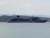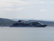 Riječ je o dvjesto metara dugačakom kruzeru njemačke kompanije HapagLloyd za čije je goste, koji su na dvotjedno krstarenje Mediteranom krenuli iz Istambula, grad Krk bio svojevrsna luka iznenađenja. Nakon sidrenja, uz pomoć manjih servisnih plovila, posada ovog luksuznog plovećeg hotela na Ribarski mul iskrcala je svoje putnike što su ih ovom prigodom dočekali predstavnici Županijske lučke uprave i Turističke zajednice Grada Krka, kao i kostimirana svita knezova krčkih Frankopana.