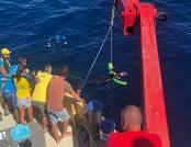 Nakon prijema u gradonačelnikovom uredu, uslijedio je obilazak natjecanja koje se odvija nedaleko otočića Plavnika, što znači da je na natjecateljskom brodu posjet zaključen druženjem s roniocima i predstavnicima organizatora.
