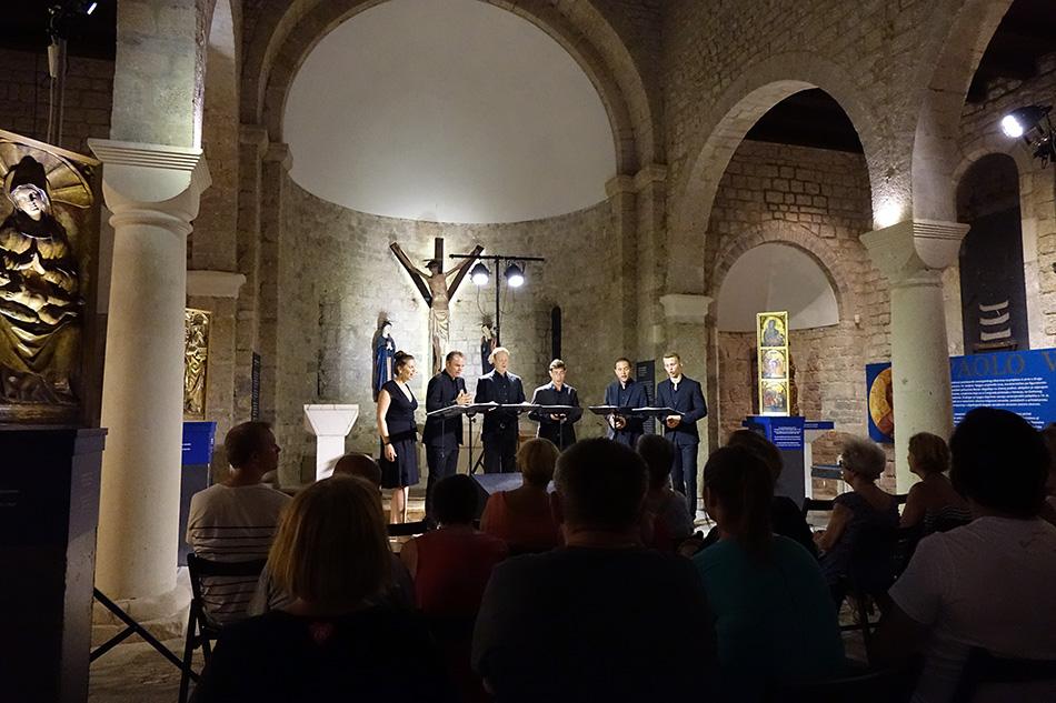 Svakako zanimljiv i pomno posložen program kojeg su na jedinstvenu krčku scenu donijeli vokalisti Singer Pura - Claudia Reinhard (sopran), Rüdiger Ballhorn (tenor), Markus Zapp (tenor), Manuel Warwitz (tenor), Reiner Schneider-Waterberg (bariton) i Jan Kuhar (bas) - bio je izvrsna prilika da se kroz šetnju renesansnim i ranobaroknim glazbenim tradicijama što su se formirale diljem Europe (posebice u Njemačkoj, Italiji i Francuskoj) oživi glazba kojoj su zaista, u specifičnim prilikama, mogli svjedočiti Knezovi Krčki, i to u trenutku vrhunca svoje moći. Skladbe što ih je maestralno, u potpunoj vokalnoj harmoniji, izveo njemački ansambl bile su podijeljene u nekoliko tematskih cjelina (Jutro poslije; U crkvi; Lov; Večera u dvorcu; Ljubav, požuda i lakomost) prateći na taj način konkretne trenutke u životu krčkih plemenitaša, s time da je svako od poglavlja bilo praćeno naracijom kojom je opširno pojašnjen odabir skladbi i predstavljeni skladatelji. Još jednom, Krčani su njemačke glazbenike sa scene ispratili uz glasno aplaudiranje i odobravanje, zasluživši pritom bis tj. posebnu interpretaciju jednog od klapskih klasika.
