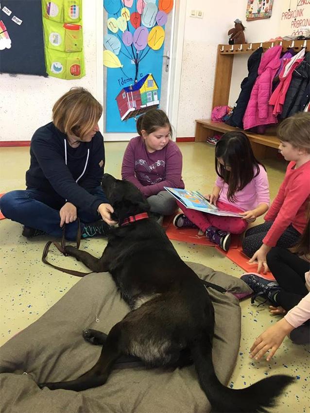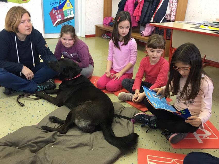 Uz podršku ravnatelja škole i suglasnost roditelja, prvi razred Osnovne škole Fran Krsto Frankošan - Matične škole Vrh, prošlog je tjedna posjetila kujica imenom Ulika, naravno, u pratnji svoje voditeljice Meri Sucić. Nakon što je pas upoznao učenike i razred, udobno se smjestio i naposljetku strpljivo (od)slušao sve ono što su mu učenici željeli pročitati. Prvašići su, mora se reći, bili vidno opušteni i oduševljeni. Čitali su mu te ga istovremeno milovali, a on ih je pratio bez procjenjivanja brzine ili načina čitanja. Upravo to predstavlja primarnu zadaću provođenja ovog programa, jer pas dopušta djetetu da čita vlastitim ritmom, a dijete pred psom ne pokazuje strah kao na primjer pred vršnjacima ili odraslom osobom. Uz to, čitanje dobročudnoj Uliki bilo je i zabavno! A što je čitanje zabavnije, dijete za takvu aktivnost razvija i veći interes.