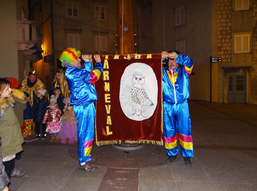 Osim mnogih Krčana okupljenih na prostoru Gradske rive, karnevalsko je vrijeme, 13. veljače, ispratila i maskirana povorka čije je čelo još jednom zauzeo nesretni mesopust, inače krivac za sve u prošloj godini proživljene nedaće, a da bismo u proljetni period krenuli bez tereta što ga on simbolizira, nakon suđenja i osude pust je konačno spaljen, a s njim su, pretpostavimo, grad napustili i već pomalo zamorni duhovi zime.