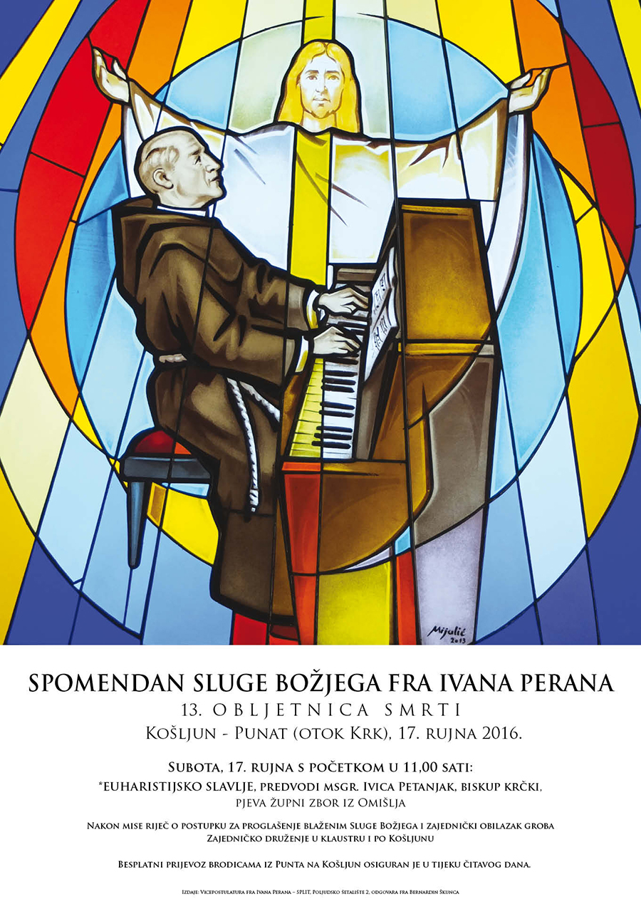 Franjevačka provincija Svetog Jeronima sa sjedištem u Zadru preko Vicepostulature i samostana na Košljunu, u subotu 17. rujna 2016. godine, obilježava 13. obljetnicu smrti sluge Božjeg fra Ivana Perana, poznatog franjevaca i glazbenika, koji je najveći duhovni trag ostavio upravo na otočiću Košljunu, odnosno otoku Krku.