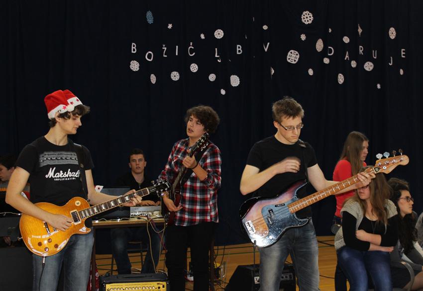 Naime, proslava Božića započela je prigodnim Božićnim koncertom kojeg je pratio i humanitarni Božićni sajam. Srednjoškolci su pjesmom podijelili radost nadolazećih blagdana i priredili glazbeno slavlje za sve svoje učenike i profesore. Ovogodišnja božićna priredba na kraju prvog polugodišta započela je stihovima Rabindranta Tagora: On dolazi, dolazi, vazda dolazi… Za nastavak priredbe u dobrom raspoloženju, pobrinuli su se školski zbor i svirači te školski bend u kojem sviraju učenici gimnazije, a koji su uz božićnu glazbenu tematiku zabavili publiku predstavivši se i u standardnom rock izdanju.