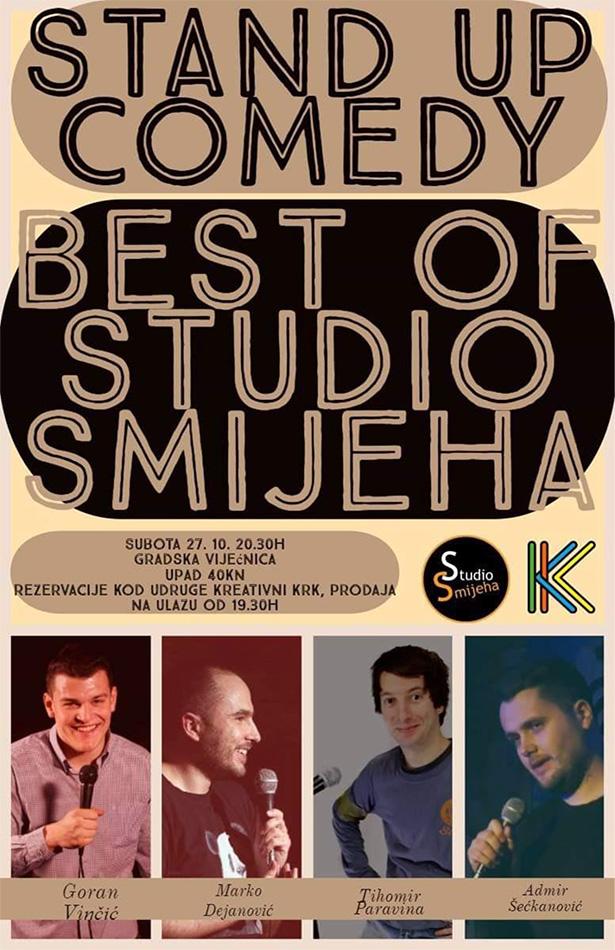 U grad Krk, 27. listopada 2018. godine, po prvi put dolaze komičari jedinog kluba stand-up komedije u regiji, zagrebačkog Studija Smijeha. Svoje najbolje fore za krčko su gostovanje pripremili: voditelj večeri Goran Vinčić, najnoviji član standardne postave kluba Studija Smijeha Admir Adi Šećkanović, veteran pomaknutog humora Tihomir Paravina i dežurni Bosanac Marko Dejanović.