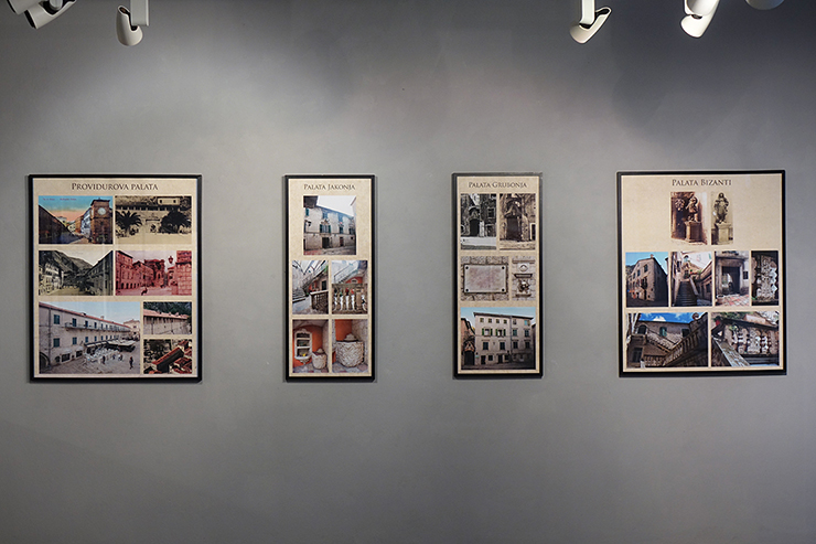 Ovom izložbom, čije su autorice povjesničarka umjetnosti Radojka Abramović i etnologinja Jelena Karadžić, prikazana je povijest plemićkih i kapetanskih palača Kotora i Perasta, s time da izložbeni dio obuhvaća seriju (starih i suvremenih) fotografija kojom se uspoređuje izgled, stanje i funkcija palača nekada i danas.