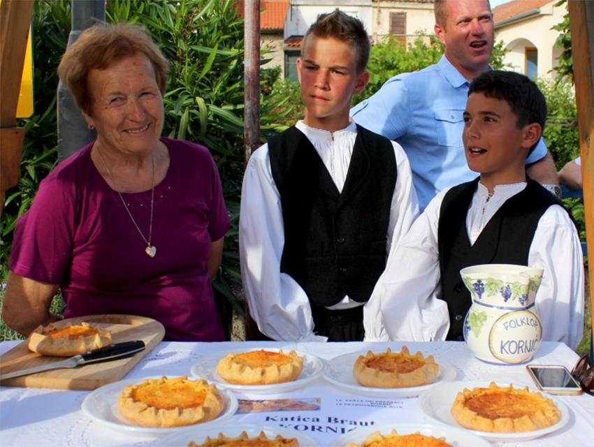 Događanje održano već dvanaesti put ni u ovogodišnjem izdanju nije iznevjerilo brojne ljubitelje slatkog i kvalitetnog, drugim rječima svega onog što izađe iz kuhinja bodulskih domaćica vičnih spravljanju delicije koja je, neovisno o lokalitetu i narječju njegovih kreatora, uvijek jednako ukusna. Program neobične te po mnogo čemu posebne Fešte i ovog je puta moderirao čelnik Katedre čakavskog sabora Kornić Damir Kremenić, a slavlju posvećenom toj na Krku sveprisutnoj domaćoj slastici, koja je ujedno postala i važnim djelom desertne ponude otočnih ugostiteljskih objekata, nazočio je i krčki gradonačelnik Darijo Vasilić. A on se, baš kao i brojni posjetitelji Kornića, ni sam nije ustručavao guštanja u tradicijskom kolaču spravljenom od samo nekoliko sastojaka - mladog ovčjeg sira, šećera, brašna, žumanjaka i vode, uz malo naribane limunove kore. Naravno, kažu nam iskusne otočne slastičarske, omjeri spomenutih sastojaka variraju od mjesta do mjesta, pa i od kuhninje do kuhinje tako da se u nijansama uvijek osjećaju razlike, jednako kao što razliku u okusu neizbježno čini i kvaliteta za izradu te slastice uporabljenog domaćeg ovčjeg sira.