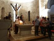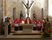 Kristovo poslanje među ljudima bilo je u znaku križa, uvodi Seršić, Kristovo navještanje Božjeg kraljevstva svoj vrhunac doživjelo je u križu, a križ je i središte tajne spasenja čovjeka. Ljudsko postojanje u znaku je križa, jer nema egzistencije bez patnje i žrtve umiranja, a bez susreta s križem nema susreta sa sobom, poniranja u sebe i otkrivanja vlastite nutrine. Bez iskustva križa nema ni duhovne izgradnje i obnove. I ova naša izložba, nastavlja Seršić, također je u znaku križa! Ideja za ovogodišnji postav tako se rodila nakon povratka s restauracije velikog gotičkog raspela, restauracije koja je trajala nemalih 14 godina. Prilikom nedavnog biskupskog ređenja ta je umjetnina bila postavljeno na glavnom oltaru Katedrale, a sada je ponovo u središtu, u apsidi crkve sv. Kvirina. Križ je naime centralni motiv ovogodišnjeg postava te smo ga pozvani promatrati kako bi nam ljepota umjetnosti i svetoga pomogla prepoznati mjesto susreta neba i zemlje. Krčka biskupija, tumači Seršić, u ovoj prigodi iznova izlaže dio svog umjetničkog blaga - raspela, kipove, slike i relikvijare - iz Velog Lošinja, Malog Lošinja, Osora, Cresa, Baške, Jurandvora, Vrbnika i riznice Krčke katedrale. Bogatstvo je to u rasponu od 9. do 21. stoljeća, djela znanih i neznanih umjetnika, čija su imena naznačena na pločicama uz izloške. Kako jedno ime nije nigdje ispisano, ističe Seršić, želim ga posebno izdvojiti! Riječ je o vlč. Antonu Valkoviću, katedralnom župniku, koji je osmislio i izradio ukrase na prozorima, a trebali bismo mu zahvaliti i na velikom trudu uloženom u osmišljavanje i realizaciju ovog postava.