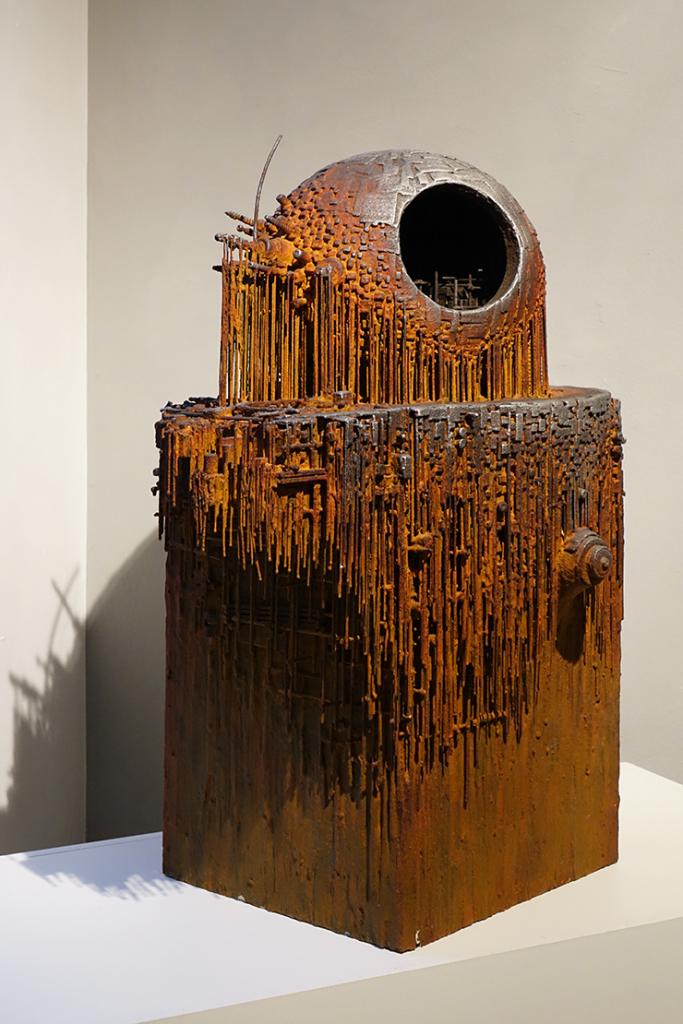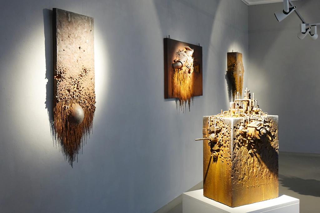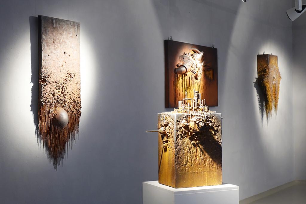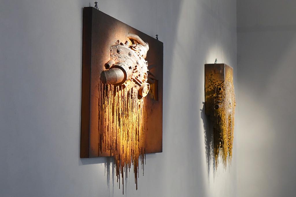 Zaokupljen mogućnostima spajanja ljudskog i tehnološkog Glibota otvara niz pitanja iz bio-mehanike, bio-etike i genetskog inženjeringa. Njegove figure zarobljene u mehaničkim strukturama svjedoče vizijama integracije čovjeka i tehnoloških komponenti te istražuju komplicirani odnos čovjeka i tehnologije. Prisutni elementi iz prirode, stabla, biljke, ali i sama apstraktna, obla, organska forma materijala, koja se povremeno javlja, podcrtava kontrast s distopijskom temom. Linije, sjene, oblici i teksture rastaču se i podsjećaju nas na degradaciju i raspadanje. Hrđave strukture prizivaju napuštene gradove. Sam naziv izložbe The Wasteland Loot (Plijen pustoši) asocira na post-apokaliptične prizore kakve viđamo u wasteland cyberpunk filmografiji. Autora tehnološki napredak fascinira, ali istovremeno plaši. Svjestan kako je put kojim civilizacija danas kroči prepun rizika i opasnosti on materijalizira/sublimira ove strahove u konkretne radove. To nisu promišljanja o dalekoj budućnosti, već o današnjim tehnološkim i medicinskim inovacijama. Primjeri integracije ljudskog tijela s naprednim tehnologijama dio su suvremene medicine. Koriste se bionički udovi, povezani s perifernim i centralnim živčanim sustavom, neuralni implantati, tehnologije augmentirane stvarnosti (AR) i senzorne ekstenzije. U tom kontekstu, Glibota se dotiče transhumanizma, ideje koja zagovara poboljšanje ljudskih sposobnosti putem tehnologije, piše Ritoša.