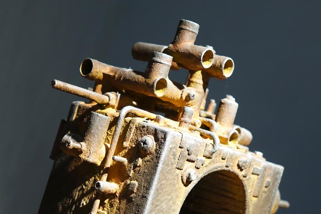 – Svojim monumentalnim konstrukcijama, reljefima i skulpturama Vice Gilbota utjelovljuje svjetove nepoznate budućnosti. Svoj umjetnički izraz gradi kroz raznovrsne materijale, od drva, kamena, gipsa i betona do stiropora i lijevane sintetičke smole, često ih kombinirajući s električnim instalacijama i metalnim punilima. Sintetička smola mu omogućuje preciznu izvedbu i direktnu interakciju s formom. Tonovi su prigušeni, boje minimalizirane i naša se pažnja okreće obradi materijala. U izradi je vidljiva sklonost kontrastima pri čemu suprotstavlja glatke i hrapave teksture, čime pojačava vizualni i taktilni dojam. Motivi koji ga zaokupljaju najčešće su u spektru cyberpunk i postapokaliptične ikonografije.