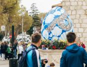 Kao i prethodnih godina, uz želju da se blagdanski duh potakne među svim građanima i posjetiteljima, u krčkom je središtu, postavljena velika oslikana pisanica, rad krčke akademske slikarice Alme Dujmović, koja je inspiraciju pronašla ne samo u morskom plavetnilu i podmorskim motivima poput stiliziranih školjki i puževa, već i poznatom antičkom mozaiku s prikazom Tritona, iskoristivši u slikanju karakterističan motiv njegovog (crnim pločicama satkanog) repa.