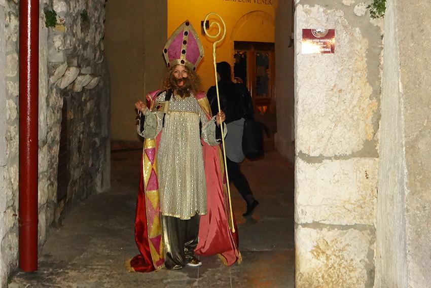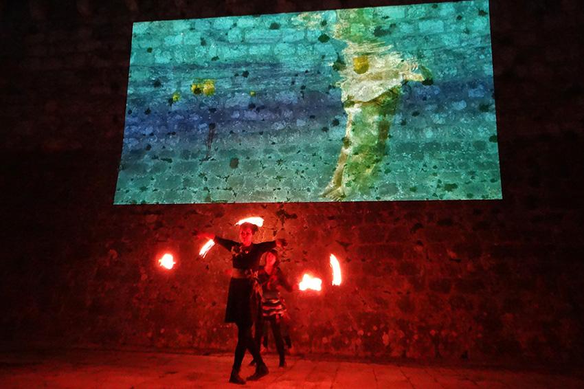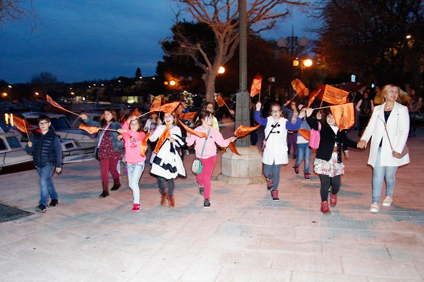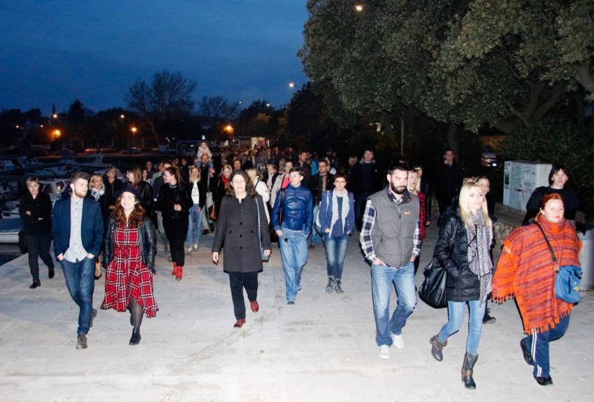 Povorka je svoj put nastavila uz ples i glazbu najmlađih članova KUD-a Poljica, a potom i zvonjavu svetog Kvirina koji je publiku dočekao na Malim vratima odvevši ih u slikovitu starogradsku jezgru. Pomalo mističnu atmosferu na Trgu Kamplin dodatno su začinili vatreni žongleri i plesači, nakon čega je na zidinama Kaštela uslijedilo prikazivanje kratkog video rada o svim odabranim susjedstvima, ali i ambijentalnog filma Sinfonia Chersodelica, creskih autora Igora Neuhauslera i Matije Jakića.