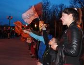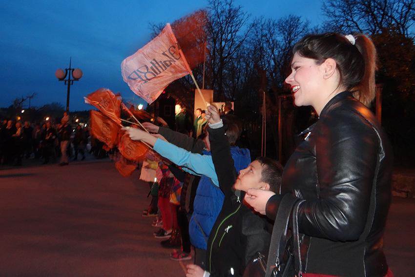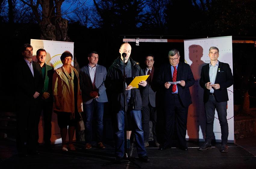 Povorka predvođena Puhačkim orkestrom Lovran tako je s krčkog autobusnog kolodvora, duž šetnicu Sv. Bernardina, krenula prema starogradskoj jezgri. Na toj su promenadi naišli mališani iz Osnovne škole Fran Krsto Frankopan koji su povorku nastavili voditi sve do pozornice na gradskoj rivi gdje je održan protokolarni dio programa. Kratkim pozdravnim govorima okupljenima su se obratili krčki gradonačelnik Darijo Vasilić, županijski pročelnik Odjela za kulturu, sport i tehničku kulturu Valerij Jurešić, direktorica društva Rijeka 2020 Emina Višnić, riječki gradonačelnik Vojko Obersnel i predsjednik Županijske skupštine Erik Fabijanić.