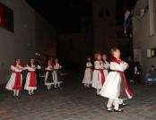 Put se u sličnoj atmosferi nastavio Frankopanskom ulicom gdje su postavljene glumačke točke u izvedbi polaznika studija Glume riječkog Sveučilišta. Na sjecištu dviju kala nastupio je Zbor Vrelo, a povorka je potom skrenula u Strossmayerovu ulicu gdje su je dočekali pjesnici recitirajući poeziju na različitim dijalektima što ih susrećemo duž naše regije. Klapa Čavle zapjevala je u Vitezićevoj, a na samom vrhu ulice mogli su se čuti tradicionalni zvukovi meha, s time da je program, uz nekoliko dojmljivih folklornih i plesnih točaka, završio u osnovnoškolskoj sportskoj dvorani. Predstavnici desetak susjedstava svojim su sudjelovanjem doprinijeli ovom neobičnom događanju kojem je na jednu večer uspjelo oživjeti krčke ulice te prirediti zaista nesvakidašnju atmosferu.